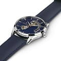Hamilton Jazzmaster Open Heart Auto H32705640 – элегантные мужские часы, сочетающие классический дизайн и современные технологии. Корпус диаметром 42 мм выполнен из нержавеющей стали, обеспечивая прочность и долговечность. Градиентный циферблат с вырезами, открывающими механизм, придаёт модели уникальный характер и стиль, а его поверхность защищена сапфировым стекломСапфировое стеклоПрочный и надёжный материал из кристалла сапфира синтетического происхождения, характеризующийся особой твёрдостью и устойчивостью к царапинам и повреждениям., устойчивым к царапинам. Часы оснащены автоматическим калибром H-10 с технологией Powermatic 80Powermatic 80Эксклюзивный калибр от швейцарской компании ETA с увеличенным запасом хода до 80 часов за счёт удлинённой заводной пружины. Характеризуется улучшенной системой спуска со сниженным трением., обеспечивающей запас хода до 80 часов и стабильную точность. Прозрачная задняя крышка позволяет наблюдать за работой механизма, добавляя эстетическую привлекательность. Синий кожаный ремешок с классической пряжкой обеспечивает комфортное ношение и надёжную фиксацию на запястье. Водозащита до 50 метров (5 бар) делает часы подходящими для повседневного использования и защищает их от случайных брызг и дождя.