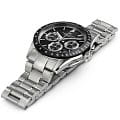 Модели из линии Jazzmaster Performer, привлекающие внимание ярким дизайном в стиле спортивный шик, сочетают в себе функциональность и эстетичность. Часы Jazzmaster Performer Automatic Chronograph оснащены автоматическим механизмом хронографаХронографФункция позволяет измерять отрезки времени с особой точностью: часы, минуты, секунды. Верным признаком хронографа является наличие на циферблате 3 дополнительных окошек-счётчиков. H-31 с 60-часовым запасом хода. Модель в корпусе из нержавеющей стали с PVD-покрытиемPVDУльтратонкое покрытие наносится в технике вакуумного напыления, сочетает в себе нитрид титана особой прочности со слоем золота или оксида хрома. Несёт в себе декоративную или защитную функцию. диаметром 42 мм имеет изящный черный циферблат и сочетающийся с безелем БезельВнешний ободок, закрепляющий стекло. В спортивных часах так называется поворотное кольцо с делениями на циферблате, выполняет роль таймера – замеряет отрезки времени на шкале. Неподвижный безель – элемент декора. Однонаправленно вращающийся безель на дайверских часах позволяет фиксировать моменты погружения и выныривания на поверхность. эффектный браслет из нержавеющей стали.