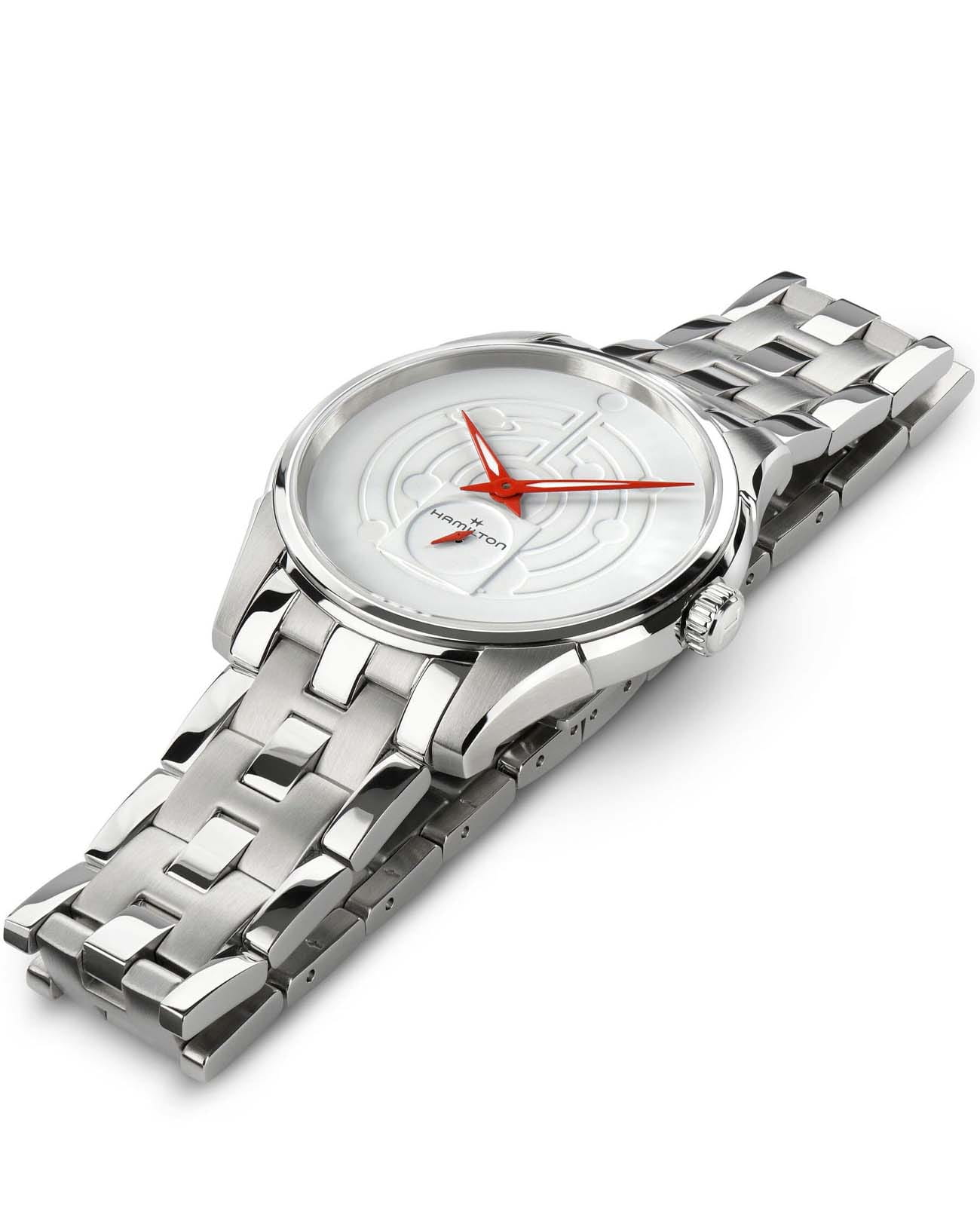 Откройте для себя новые космические горизонты: источником вдохновения для создания модели Jazzmaster Thinline Special Edition послужил фильм «Блуждающая Земля 2» – продолжение китайской научно-фантастической картины режиссера Франта Гво, основанной на романе Лю Цысиня 2000 года. Часы этой специальной серии, заключенные в обтекаемый корпус диаметром 40 мм, имеют черный циферблат с контрастными красными часовой, минутной и малой секундной стрелками. Циферблат привлекает внимание планетарным дизайном – аллюзия на тему исследования космоса, освещенную в фильме. Прочное сапфировое стеклоСапфировое стеклоПрочный и надёжный материал из кристалла сапфира синтетического происхождения, характеризующийся особой твёрдостью и устойчивостью к царапинам и повреждениям.. Браслет из нержавеющей стали с застёжкой «бабочка» с кнопкамиЗастёжка "бабочка"Такой вид застёжки дополняется предохранителями, помогающими избежать случайного раскрытия браслета. Обладают изящным исполнением. . Стрелки с люминесцентным покрытиемЛюминесцентное покрытиеПозволяет считывать показания времени в темноте. Производители наносят на стрелки, часовые индексы, безель или поверхность циферблата светонакопительный состав, дающий холодное свечение..