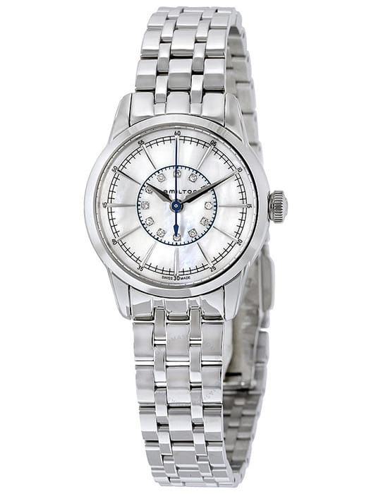 Женские швейцарские часы с бриллиантами Hamilton American Classic RailRoad Lady Quartz H40311191, кварцевый механизм с высокой точностью. Сапфировое стекло устойчивое к появлению царапин, обладающее высокой прозрачностью. Класс водозащиты: 50 метров, позволит защитить корпус от случайных брызг или капель дождя. Корпус часов изготовлен из стали, цвета.
