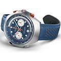 Часы Hamilton American Classic Chrono-Matic 50 (модель H51606640) — лимитированная серия из 150 экземпляров, вдохновленная гоночным духом 1970-х годов и переосмысляющая легендарную модель Chrono-Matic E. Выразительный 48-мм корпус из нержавеющей стали сочетается с контрастной сине-оранжевой палитрой циферблата. Модель оснащена автоматическим калибром H-31 с 60-часовым запасом хода. Ключевые функции включают хронографХронографФункция позволяет измерять отрезки времени с особой точностью: часы, минуты, секунды. Верным признаком хронографа является наличие на циферблате 3 дополнительных окошек-счётчиков., тахиметрическую шкалу на безелеБезельВнешний ободок, закрепляющий стекло. В спортивных часах так называется поворотное кольцо с делениями на циферблате, выполняет роль таймера – замеряет отрезки времени на шкале. Неподвижный безель – элемент декора. Однонаправленно вращающийся безель на дайверских часах позволяет фиксировать моменты погружения и выныривания на поверхность. и окошко даты. Ударопрочное сапфировое стеклоСапфировое стеклоПрочный и надёжный материал из кристалла сапфира синтетического происхождения, характеризующийся особой твёрдостью и устойчивостью к царапинам и повреждениям. с антибликовым покрытиемАнтибликовое покрытиеСлой оксида металла в 0,13-0,3 микрон, благодаря которому стекло часов не бликует и не отражает свет. Антибликовое покрытие уменьшает отражение света в 10 раз, обеспечивая отличную читаемость показателей циферблата. гарантирует защиту от царапин, а спираль баланса Nivachron™Nivachron™Специально разработанный инновационный сплав Nivachron™ повышает устойчивость часов к воздействию магнитных полей. обеспечивает устойчивость к магнитным полям и перепадам температур. Люминесцентное покрытиеЛюминесцентное покрытиеПозволяет считывать показания времени в темноте. Производители наносят на стрелки, часовые индексы, безель или поверхность циферблата светонакопительный состав, дающий холодное свечение. Super-LumiNova на стрелках и индексах обеспечивает видимость в темноте. Водонепроницаемость 10 бар (100 метров) позволяет использовать часы при плавании. Ремешок из перфорированной кожи коровы в двухцветном сине-оранжевом исполнении дополнен классической застёжкой шириной 20 мм.