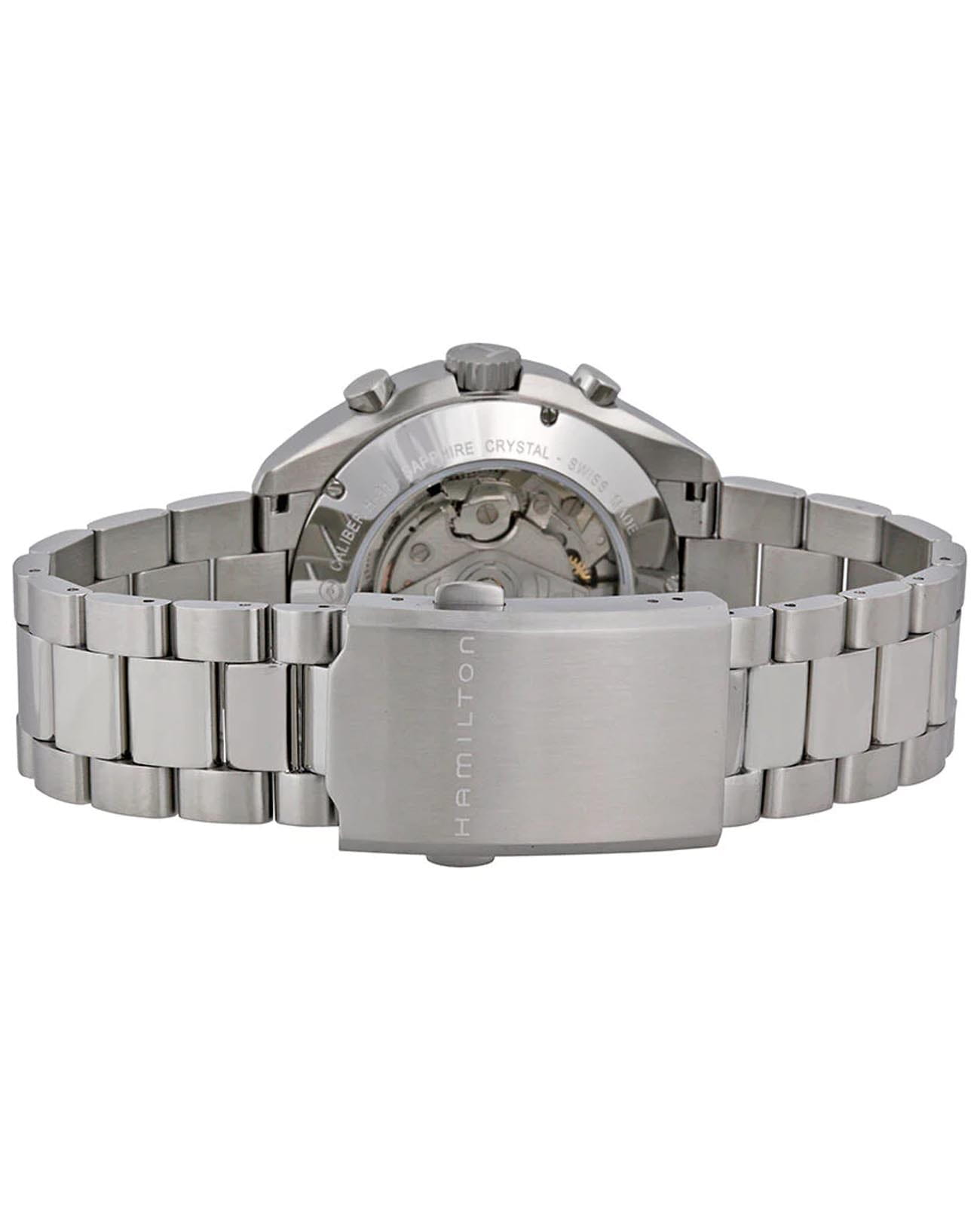 Выдержанные в стиле моделей, создаваемых в 1970-е годы для британских ВВС, часы Khaki Pilot Pioneer приводятся в действие с помощью современных технологий. Современные материалы и испытанный на практике дизайн позволили создать часы с поразительной индикацией показаний. Мужские механические швейцарские часы-хронографХронографФункция позволяет измерять отрезки времени с особой точностью: часы, минуты, секунды. Верным признаком хронографа является наличие на циферблате 3 дополнительных окошек-счётчиков. с секундомеромСекундомерСекундоме́р — прибор, способный измерять интервалы времени с точностью до долей секунды. и автоматическим подзаводом Hamilton Khaki Aviation H76416155, механический механизм (автоматический калибр) с высокой точностью. Сапфировое стеклоСапфировое стеклоПрочный и надёжный материал из кристалла сапфира синтетического происхождения, характеризующийся особой твёрдостью и устойчивостью к царапинам и повреждениям. устойчивое к появлению царапин, обладающее высокой прозрачностью. Класс водозащиты: 100 метров, позволит плавать, нырять и заниматься другими водными видами спорта. Корпус часов изготовлен из стали. Стальной браслет на раскладной застёжкеРаскладная застёжкаТакой тип застёжки используется только на браслетах из металла. Она никогда не раскрывается полностью, происходит разделение на 2 и более частей. Раскладывающая застёжка снизит вероятность потери часов к минимуму.. Прозрачная задняя крышка. Модель Auto Chrono оснащена новейшим механизмом хронографаХронографФункция позволяет измерять отрезки времени с особой точностью: часы, минуты, секунды. Верным признаком хронографа является наличие на циферблате 3 дополнительных окошек-счётчиков. H-31. H-31 - это мощный автоматический механизм хронографаХронографФункция позволяет измерять отрезки времени с особой точностью: часы, минуты, секунды. Верным признаком хронографа является наличие на циферблате 3 дополнительных окошек-счётчиков. с увеличенным 60-часовым запасом хода, что делает его идеальным для самых спортивных моделей. С декорированием «H» на инерционном мосту невозможно ошибиться в создателе данного калибра.