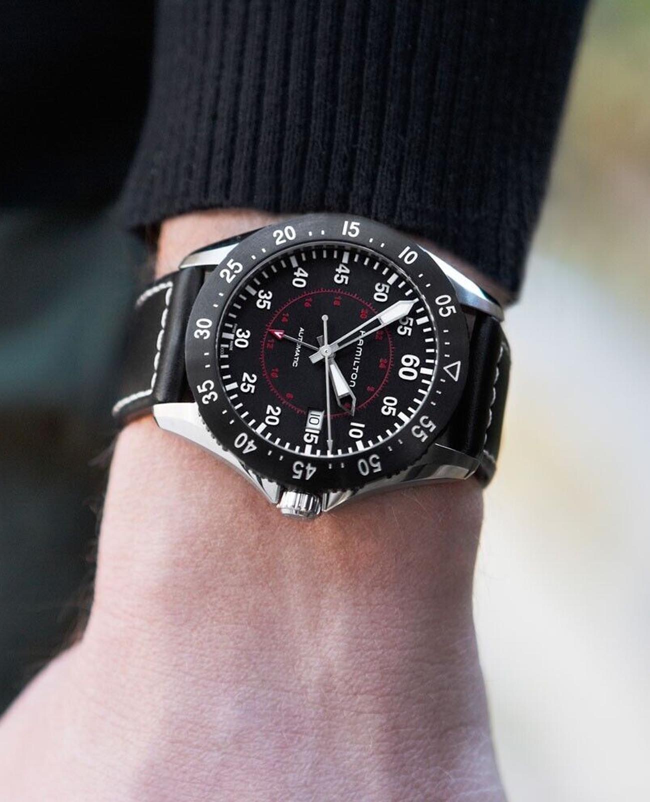 Мужские швейцарские механические часы с автоподзаводом Hamilton Khaki Aviation Pilot GMTGMTОтображение времени второго часового пояса.Такая функция особенно актуальна для путешественников и бизнесменов,которые общаются с людьми из разных стран,теперь вы всегда будете знать,какой час у вашего партнёра или близкого человека. Auto H76755735. Корпус часов изготовлен из нержавеющей стали. Сапфировое стеклоСапфировое стеклоПрочный и надёжный материал из кристалла сапфира синтетического происхождения, характеризующийся особой твёрдостью и устойчивостью к царапинам и повреждениям. устойчивое к мелким механическим повреждениям. Стрелки и метки с люминесцентным покрытиемЛюминесцентное покрытиеПозволяет считывать показания времени в темноте. Производители наносят на стрелки, часовые индексы, безель или поверхность циферблата светонакопительный состав, дающий холодное свечение.. Кожаный ремешок на стандартной застёжке. Окошко даты находится в положении 3 часа. 12 и 24-часовой формат времени. Класс водозащиты: 100 метров, позволит плавать, нырять и заниматься другими водными видами спорта. БезельБезельВнешний ободок, закрепляющий стекло. В спортивных часах так называется поворотное кольцо с делениями на циферблате, выполняет роль таймера – замеряет отрезки времени на шкале. Неподвижный безель – элемент декора. Однонаправленно вращающийся безель на дайверских часах позволяет фиксировать моменты погружения и выныривания на поверхность. с PVD-покрытиемPVDУльтратонкое покрытие наносится в технике вакуумного напыления, сочетает в себе нитрид титана особой прочности со слоем золота или оксида хрома. Несёт в себе декоративную или защитную функцию..