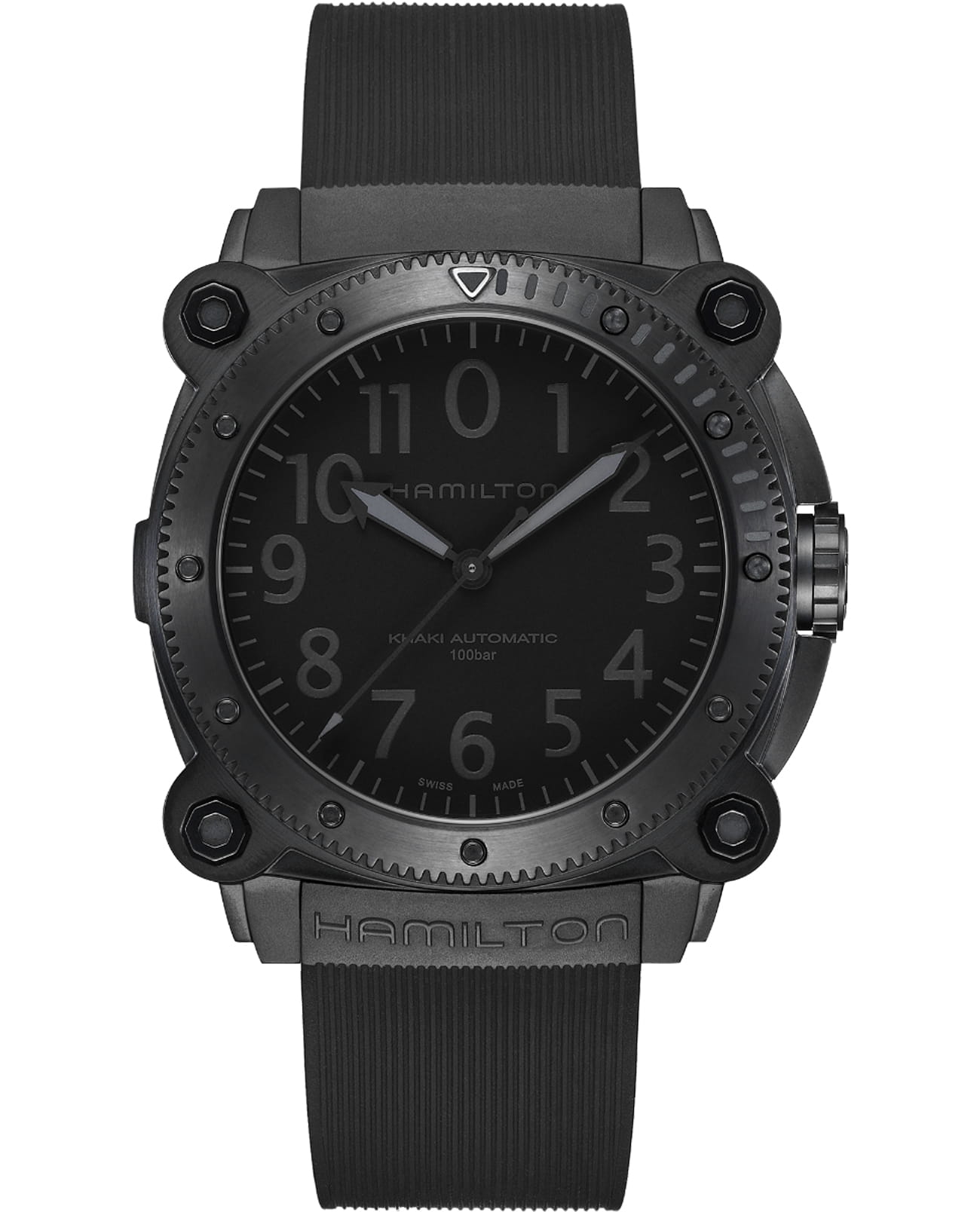 Мужские механические швейцарские часы с автоподзаводом Hamilton Khaki Navy BeLOWZERO Auto Titanium H78505330, автоматический механизм с высокой точностью. Сапфировое стеклоСапфировое стеклоПрочный и надёжный материал из кристалла сапфира синтетического происхождения, характеризующийся особой твёрдостью и устойчивостью к царапинам и повреждениям. устойчивое к появлению царапин, обладающее высокой прозрачностью. Класс водозащиты: 1000 метров, позволит плавать, нырять и заниматься другими водными видами спорта. Корпус часов изготовлен из титана с PVD-покрытиемPVDУльтратонкое покрытие наносится в технике вакуумного напыления, сочетает в себе нитрид титана особой прочности со слоем золота или оксида хрома. Несёт в себе декоративную или защитную функцию.. Стрелки с люминесцентным покрытиемЛюминесцентное покрытиеПозволяет считывать показания времени в темноте. Производители наносят на стрелки, часовые индексы, безель или поверхность циферблата светонакопительный состав, дающий холодное свечение.. Каучуковый ремешок.