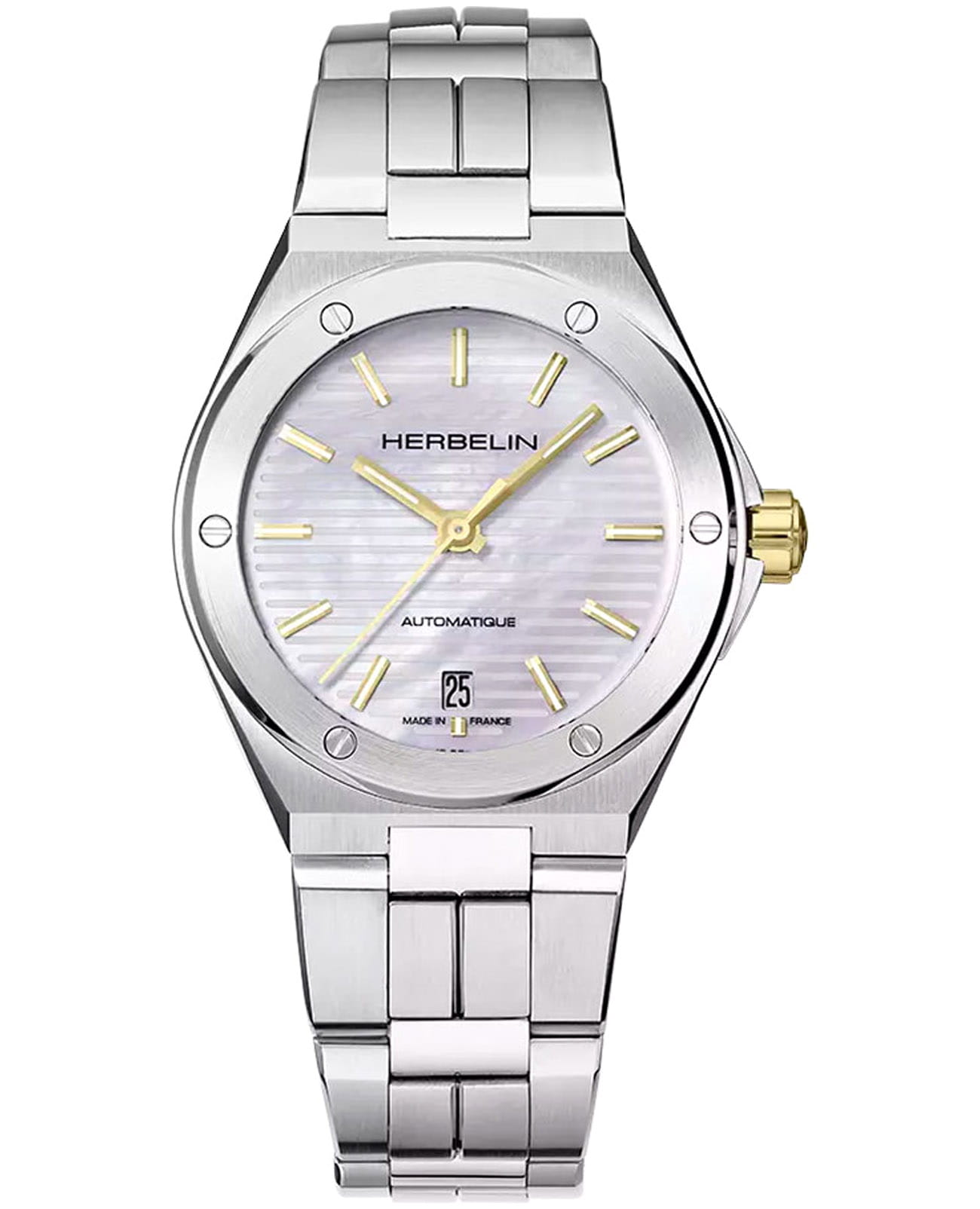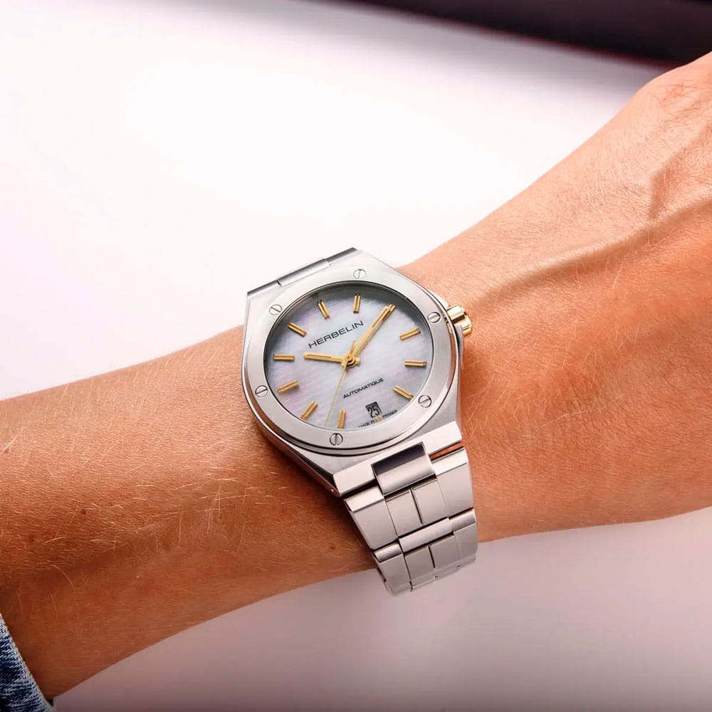 Женские механические часы с автоподзаводом Herbelin Cap Camarat 1545B19T – отражающий идеальное сочетание современного дизайна, надёжности и функциональности. Элегантный облик станет превосходным завершением образа, наделив его индивидуальным характером. Корпус из нержавеющей стали серебристого цвета, диаметром 37 мм, идеально сбалансирован и элегантен. Сапфировое стеклоСапфировое стеклоПрочный и надёжный материал из кристалла сапфира синтетического происхождения, характеризующийся особой твёрдостью и устойчивостью к царапинам и повреждениям. защищает циферблат от царапин и устойчивое к механическим повреждениям. БезельБезельВнешний ободок, закрепляющий стекло. В спортивных часах так называется поворотное кольцо с делениями на циферблате, выполняет роль таймера – замеряет отрезки времени на шкале. Неподвижный безель – элемент декора. Однонаправленно вращающийся безель на дайверских часах позволяет фиксировать моменты погружения и выныривания на поверхность. украшен винтами, заводная головка с защитой. Окошко даты находится в положении 6 часов. Стрелки и метки с люминесцентным покрытиемЛюминесцентное покрытиеПозволяет считывать показания времени в темноте. Производители наносят на стрелки, часовые индексы, безель или поверхность циферблата светонакопительный состав, дающий холодное свечение.. Стальной браслет на застёжке-бабочке с кнопкамиЗастёжка "бабочка"Такой вид застёжки дополняется предохранителями, помогающими избежать случайного раскрытия браслета. Обладают изящным исполнением. обеспечивает комфортное ношение. Водозащита 100 метров позволит плавать, нырять и заниматься другими водными видами спорта. Эта модель – отличный выбор для тех, кто ищет сочетание стиля, качества и функциональности. Часы станут не только полезным аксессуаром, но и выразительным элементом вашего имиджа.