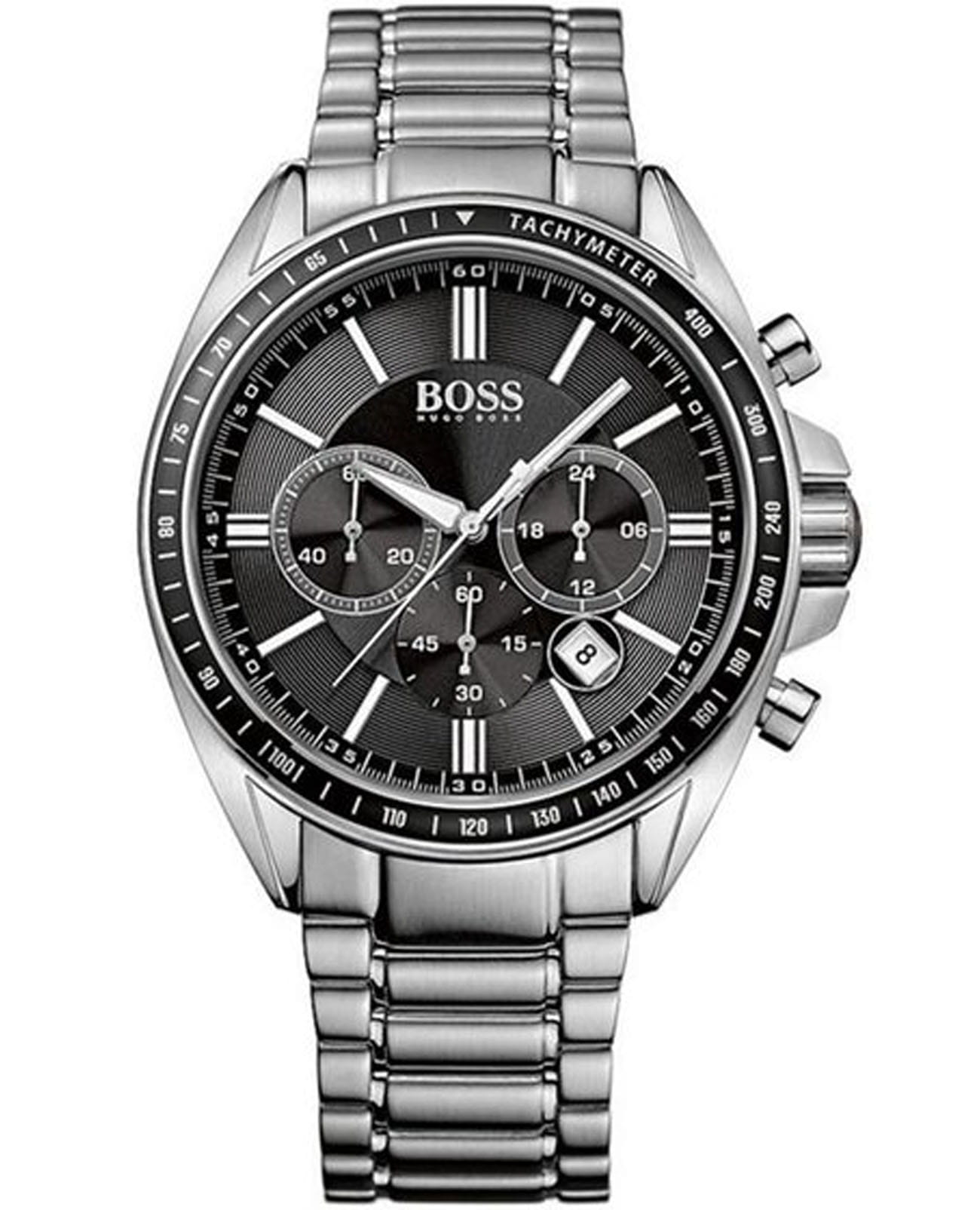 Мужские кварцевые часы Hugo Boss HB1513080 представляют собой стильный хронографХронографФункция позволяет измерять отрезки времени с особой точностью: часы, минуты, секунды. Верным признаком хронографа является наличие на циферблате 3 дополнительных окошек-счётчиков. с корпусом диаметром 44 мм из нержавеющей стали, дополненным черным циферблатом с серебристыми стрелками и индексами для оптимальной читаемости. Модель оснащена высокоточным кварцевым механизмом с функцией хронографаХронографФункция позволяет измерять отрезки времени с особой точностью: часы, минуты, секунды. Верным признаком хронографа является наличие на циферблате 3 дополнительных окошек-счётчиков., включая 60-минутный счетчик и 24-часовой индикатор, а также тахиметрической шкалой на неподвижном безелеБезельВнешний ободок, закрепляющий стекло. В спортивных часах так называется поворотное кольцо с делениями на циферблате, выполняет роль таймера – замеряет отрезки времени на шкале. Неподвижный безель – элемент декора. Однонаправленно вращающийся безель на дайверских часах позволяет фиксировать моменты погружения и выныривания на поверхность. с IP-покрытиемIP-покрытиеМетод ионного напыления. Демонстрирует повышенную устойчивость к истиранию, окислению и химическим веществам. Под воздействием высокого давления и температуры около 1500°C молекулы металла надёжно соединяются с частицами корпуса часов. для расчетов скорости. Циферблат защищен устойчивым к царапинам минеральным стекломМинеральное стеклоМинеральное стекло представляет собой искусственно выращенный минерал кварца. Такое стекло отличается особой устойчивостью к повреждениям и царапинам. Уступает по некоторым качествам сапфировому стеклу., а водонепроницаемость 5 ATM (50 метров) обеспечивает защиту от брызг и дождя, делая часы практичными для повседневного использования. Стальной браслет с застёжкой «бабочка»Застёжка "бабочка"Такой вид застёжки дополняется предохранителями, помогающими избежать случайного раскрытия браслета. Обладают изящным исполнением. обеспечивает надежную и комфортную посадку на запястье, подчеркивая спортивно-элегантный стиль модели. Люминесцентное покрытиеЛюминесцентное покрытиеПозволяет считывать показания времени в темноте. Производители наносят на стрелки, часовые индексы, безель или поверхность циферблата светонакопительный состав, дающий холодное свечение. на стрелках обеспечивает отличную видимость в темноте.
