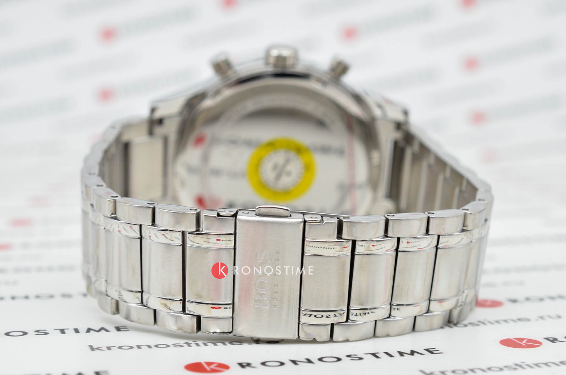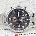 Мужские изысканные часы Hugo Boss Aeroliner HB1513181 сочетают спортивный стиль с функциональностью в корпусе из нержавеющей стали диаметром 44 мм с прочным минеральным стекломМинеральное стеклоМинеральное стекло представляет собой искусственно выращенный минерал кварца. Такое стекло отличается особой устойчивостью к повреждениям и царапинам. Уступает по некоторым качествам сапфировому стеклу., устойчивым к царапинам. Модель оснащена точным кварцевым механизмом с функциями хронографаХронографФункция позволяет измерять отрезки времени с особой точностью: часы, минуты, секунды. Верным признаком хронографа является наличие на циферблате 3 дополнительных окошек-счётчиков. и календарём (индикация даты), а также арабскими метками на чёрном стильном циферблате для оптимальной читаемости. Люминесцентное покрытиеЛюминесцентное покрытиеПозволяет считывать показания времени в темноте. Производители наносят на стрелки, часовые индексы, безель или поверхность циферблата светонакопительный состав, дающий холодное свечение. на стрелках обеспечивает превосходную читаемость показаний даже в самых темных условиях.Стальной браслет на раскладной застежкеРаскладная застёжкаТакой тип застёжки используется только на браслетах из металла. Она никогда не раскрывается полностью, происходит разделение на 2 и более частей. Раскладывающая застёжка снизит вероятность потери часов к минимуму. гарантирует комфорт и безопасность при носке, а водонепроницаемость WR50 (5 атм) защищает от брызг воды и дождя. Эта модель – отличный выбор для тех, кто ищет сочетание стиля, качества и функциональности. Часы станут не только полезным аксессуаром, но и выразительным элементом вашего имиджа.