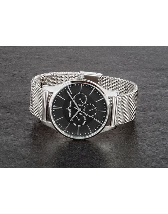 Наручные часы Jacques Lemans призваны ставить на первое место индивидуальный стиль владельца, классическая элегантность придётся по вкусу каждому. Брендовые часы привлекают минималистичным дизайном, отсутствие вычурности и обилия декорирующих элементов делают модель лучшим решением для ежедневного применения. Аксессуар можно носить с деловыми костюмами и повседневной одеждой, он органично сочетается как с классическими брюками, так и с рваными джинсами. Это настоящее часовое искусство высокого качества, часы считаются актуальным вариантом на все времена и с идеальной точностью показывают время благодаря надёжному японскому механизму.