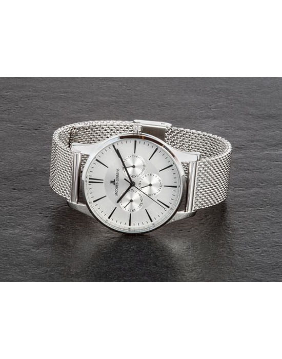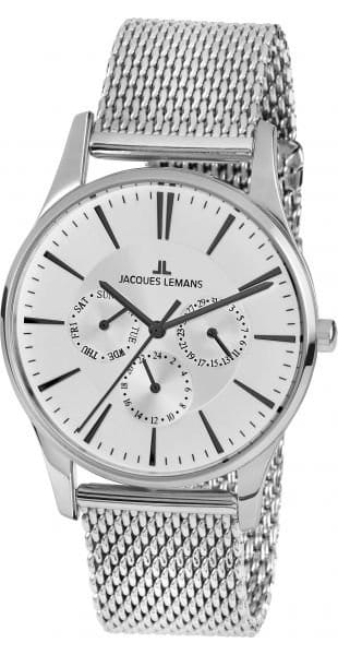 Наручные часы Jacques Lemans с календарем (число, день недели), 12/24 часовым форматом времени, призваны ставить на первое место индивидуальный стиль владельца, классическая элегантность придётся по вкусу каждому. Брендовые часы привлекают минималистичным дизайном, отсутствие вычурности и обилия декорирующих элементов делают модель лучшим решением для ежедневного применения. Аксессуар можно носить с деловыми костюмами и повседневной одеждой, он органично сочетается как с классическими брюками, так и с рваными джинсами. Это настоящее часовое искусство высокого качества, часы считаются актуальным вариантом на все времена и с идеальной точностью показывают время благодаря надёжному японскому механизму. Корпус серебристого цвета на классической раскладной застёжкеРаскладная застёжкаТакой тип застёжки используется только на браслетах из металла. Она никогда не раскрывается полностью, происходит разделение на 2 и более частей. Раскладывающая застёжка снизит вероятность потери часов к минимуму.