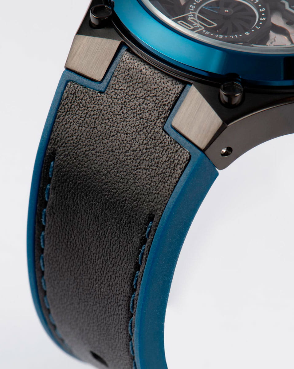 Ремешок часов состоит из двух частей: верхняя сделана из натуральной кожи черного цвета, нижняя — из силикона, удобного современного материала, который не боится повышенной влажности.