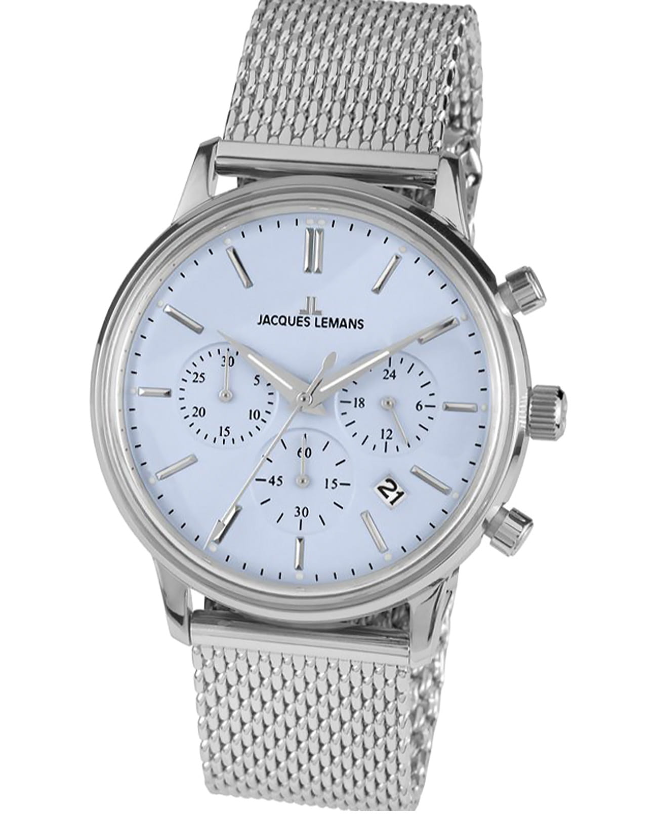 Мужские наручные часы с хронографом Jacques Lemans N-209N, кварцевый механизм с высокой точностью. Класс водозащиты: 50 метров, позволит защитить корпус от случайных брызг или капель дождя. Корпус часов изготовлен из стали, серебристого цвета.