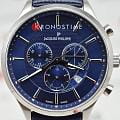 Внутри установлен швейцарский кварцевый механизм, обеспечивающий высокую точность хода. Функции хронографаХронографФункция позволяет измерять отрезки времени с особой точностью: часы, минуты, секунды. Верным признаком хронографа является наличие на циферблате 3 дополнительных окошек-счётчиков. и отображения даты добавляют практичности в повседневном использовании.