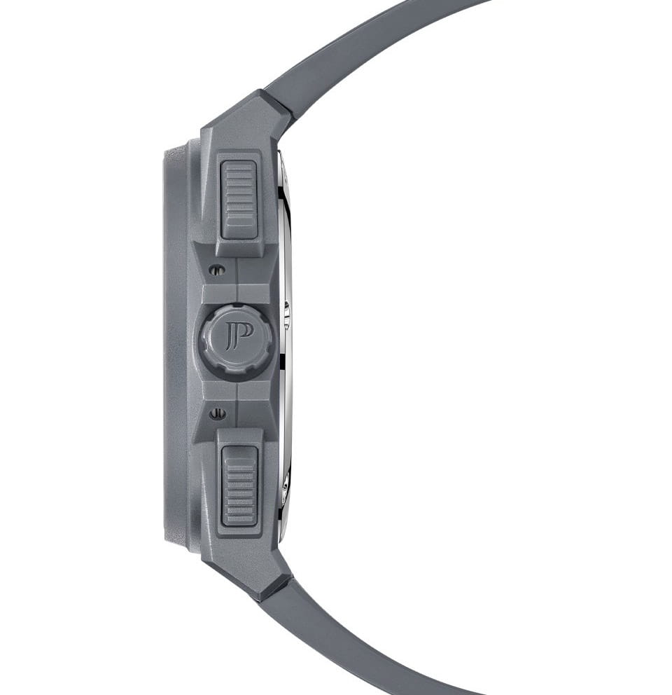 Часы Jacques Philippe JPQGC518447 из коллекции Militia — стильные швейцарские часы с функцией хронографаХронографФункция позволяет измерять отрезки времени с особой точностью: часы, минуты, секунды. Верным признаком хронографа является наличие на циферблате 3 дополнительных окошек-счётчиков. и секундомераСекундомерСекундоме́р — прибор, способный измерять интервалы времени с точностью до долей секунды., которые сочетают в себе элегантность и современный функционал. Модель оснащена надежным кварцевым механизмом, обеспечивающим высокую точность хода. Корпус выполнен из нержавеющей стали 316L с износостойким серым IP-покрытиемIP-покрытиеМетод ионного напыления. Демонстрирует повышенную устойчивость к истиранию, окислению и химическим веществам. Под воздействием высокого давления и температуры около 1500°C молекулы металла надёжно соединяются с частицами корпуса часов., диаметр корпуса составляет 48 мм, толщина — 12,5 мм. Сапфировое стеклоСапфировое стеклоПрочный и надёжный материал из кристалла сапфира синтетического происхождения, характеризующийся особой твёрдостью и устойчивостью к царапинам и повреждениям. защищает часы от царапин и сохраняет прозрачность даже при активном использовании. Черный циферблат дополнен тремя дополнительными индикаторами и окошком даты в положении 4 часа, а стрелки имеют люминесцентное покрытиеЛюминесцентное покрытиеПозволяет считывать показания времени в темноте. Производители наносят на стрелки, часовые индексы, безель или поверхность циферблата светонакопительный состав, дающий холодное свечение.  для удобства чтения времени в темноте. Силиконовый браслет шириной 26 мм и длиной 19 см надежно фиксируется на запястье стандартной застежкой и обеспечивает комфорт при носке. Водозащита 5 АТМ позволяет не снимать часы при мытье рук или прогулках под дождём.
