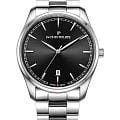Стальной браслет на застёжке-бабочке с кнопкамиЗастёжка "бабочка"Такой вид застёжки дополняется предохранителями, помогающими избежать случайного раскрытия браслета. Обладают изящным исполнением. , который подчёркивает деловой характер модели и обеспечивает комфортную посадку на запястье. Водозащита до 100 ATM позволит плавать, нырять и заниматься другими водными видами спорта.