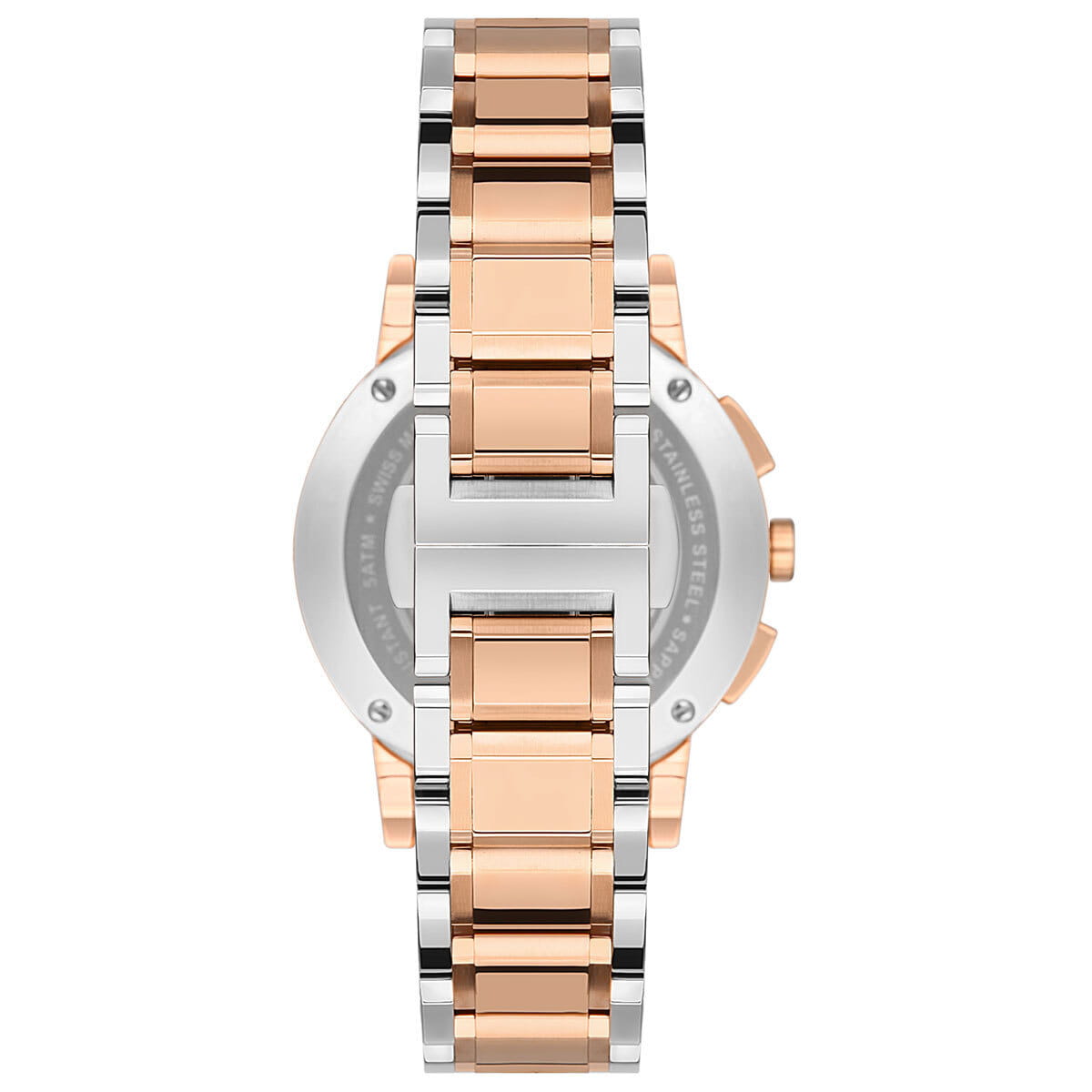 Швейцарские женские часы c хронографомХронографФункция позволяет измерять отрезки времени с особой точностью: часы, минуты, секунды. Верным признаком хронографа является наличие на циферблате 3 дополнительных окошек-счётчиков. Jacques Philippe Cosmos JPQLC323328, кварцевый механизм с высокой точностью. Сапфировое стеклоСапфировое стеклоПрочный и надёжный материал из кристалла сапфира синтетического происхождения, характеризующийся особой твёрдостью и устойчивостью к царапинам и повреждениям. устойчивое к появлению царапин, обладающее высокой прозрачностью. Корпус часов изготовлен из нержавеющей стали с IP-покрытиемIP-покрытиеМетод ионного напыления. Демонстрирует повышенную устойчивость к истиранию, окислению и химическим веществам. Под воздействием высокого давления и температуры около 1500°C молекулы металла надёжно соединяются с частицами корпуса часов.. Класс водозащиты: 50 метров, позволит защитить корпус от случайных брызг или капель дождя. Стальной браслет на застёжке-бабочке с кнопкамиЗастёжка "бабочка"Такой вид застёжки дополняется предохранителями, помогающими избежать случайного раскрытия браслета. Обладают изящным исполнением. . Окошко даты находится в положении между 4 и 5 часов. Циферблат инкрустирован кристаллами.