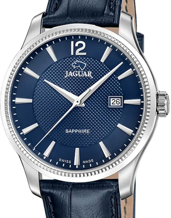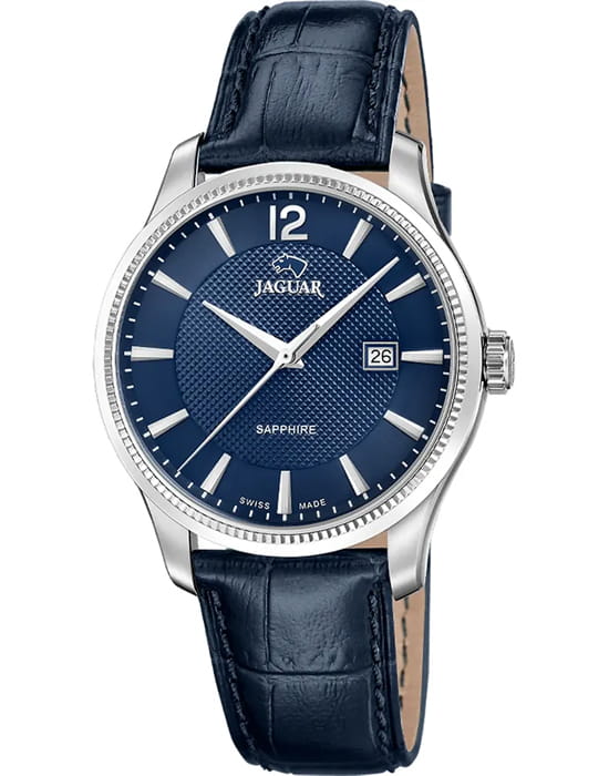 Jaguar J1042/3 из коллекции Acamar — элегантные мужские часы, сочетающие швейцарское качество и современный дизайн. Корпус диаметром 40 мм выполнен из нержавеющей стали, что обеспечивает прочность и долговечность. Сапфировое стеклоСапфировое стеклоПрочный и надёжный материал из кристалла сапфира синтетического происхождения, характеризующийся особой твёрдостью и устойчивостью к царапинам и повреждениям. защищает циферблат от царапин и повреждений. Синий циферблат с серебристыми стрелками подчёркивает изысканный стиль. Часы оснащены функцией индикации даты, расположенной в окошке на отметке «3 часа», что добавляет практичности. Ремешок из кожи гарантирует комфортное ношение. Классическая застёжка обеспечивает надёжную фиксацию на запястье. Водозащита до 5 ATM (50 метров) делает часы подходящими для повседневного использования. Jaguar J1042/3 — это идеальный выбор для мужчин, которые ценят классический дизайн и современные технологии.