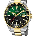 Мужские швейцарские часы Jaguar Executive Diver J863/4. Кварцевый швейцарский калибр Ronda 6003D. Сапфировое стеклоСапфировое стеклоПрочный и надёжный материал из кристалла сапфира синтетического происхождения, характеризующийся особой твёрдостью и устойчивостью к царапинам и повреждениям. устойчивое к мелким механическим повреждениям. Корпус и браслет часов изготовлены из нержавеющей стали. Стрелки и метки с люминесцентным покрытиемЛюминесцентное покрытиеПозволяет считывать показания времени в темноте. Производители наносят на стрелки, часовые индексы, безель или поверхность циферблата светонакопительный состав, дающий холодное свечение.. Окошко даты находится в положении 3 часа. Класс водозащиты: 200 метров, позволит плавать, нырять и заниматься другими водными видами спорта. Стальной браслет с частичным PVD-покрытиемPVDУльтратонкое покрытие наносится в технике вакуумного напыления, сочетает в себе нитрид титана особой прочности со слоем золота или оксида хрома. Несёт в себе декоративную или защитную функцию. на раскладной застёжкеРаскладная застёжкаТакой тип застёжки используется только на браслетах из металла. Она никогда не раскрывается полностью, происходит разделение на 2 и более частей. Раскладывающая застёжка снизит вероятность потери часов к минимуму.. БезельБезельВнешний ободок, закрепляющий стекло. В спортивных часах так называется поворотное кольцо с делениями на циферблате, выполняет роль таймера – замеряет отрезки времени на шкале. Неподвижный безель – элемент декора. Однонаправленно вращающийся безель на дайверских часах позволяет фиксировать моменты погружения и выныривания на поверхность. с PVD-покрытиемPVDУльтратонкое покрытие наносится в технике вакуумного напыления, сочетает в себе нитрид титана особой прочности со слоем золота или оксида хрома. Несёт в себе декоративную или защитную функцию..