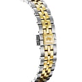 Женские швейцарские часы Jaguar Automatic Open Heart J995/1, механизм — автоподзавод. В часах с автоподзаводом заводная головка практически не используется, что исключает истирание ее материала и материала корпуса. Сапфировое стеклоСапфировое стеклоПрочный и надёжный материал из кристалла сапфира синтетического происхождения, характеризующийся особой твёрдостью и устойчивостью к царапинам и повреждениям. устойчивое к мелким механическим повреждениям. Корпус часов изготовлен из нержавеющей стали. Класс водозащиты: 50 метров, позволит защитить корпус от случайных брызг или капель дождя. Стальной браслет с частичным PVD-покрытиемPVDУльтратонкое покрытие наносится в технике вакуумного напыления, сочетает в себе нитрид титана особой прочности со слоем золота или оксида хрома. Несёт в себе декоративную или защитную функцию. на застёжке-бабочке с кнопкамиЗастёжка "бабочка"Такой вид застёжки дополняется предохранителями, помогающими избежать случайного раскрытия браслета. Обладают изящным исполнением. . Циферблат украшен кристаллами в роли часовых индексов, крупная апертура в виде сердца, открывающая обзор на балансовое колесо механизма. БезельБезельВнешний ободок, закрепляющий стекло. В спортивных часах так называется поворотное кольцо с делениями на циферблате, выполняет роль таймера – замеряет отрезки времени на шкале. Неподвижный безель – элемент декора. Однонаправленно вращающийся безель на дайверских часах позволяет фиксировать моменты погружения и выныривания на поверхность. с PVD-покрытиемPVDУльтратонкое покрытие наносится в технике вакуумного напыления, сочетает в себе нитрид титана особой прочности со слоем золота или оксида хрома. Несёт в себе декоративную или защитную функцию..
