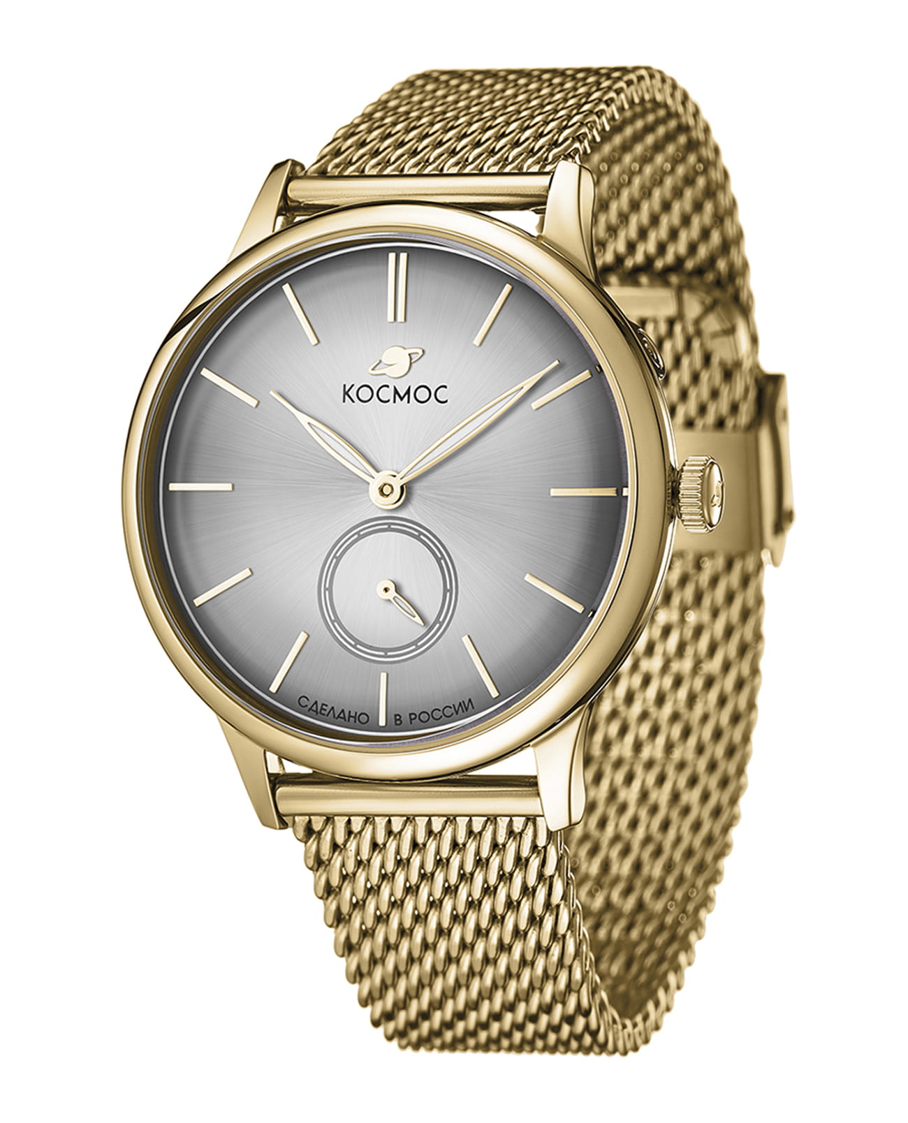 Мужские наручные часы Космос Сириус K 021.20.33 — это сочетание традиций часового искусства 60-70-х годов и футуристического дизайна, вдохновленного космическими исследованиями. Они не только служат напоминанием о прошлом, но и побуждают задуматься о будущем, позволяя наслаждаться качеством и смыслом, вложенными в каждую деталь. Полированный корпус часов выполнен в виде силуэта летающей тарелки благодаря выпуклым формам стекла и нижней части корпуса. Стальные ушки, которые напоминают опоры летающей тарелки, завершает общий образ. На задней крышке часов выгравирован фантазийный сюжет – космическая станция будущего. Серый циферблат в ретро-стиле с выгнутыми краями требует сложной технологии производства, что делает их аналогами часов прошлых эпох. Кончик секундной стрелки изогнут так, чтобы гармонировать с формой циферблата. Выпуклый градиентный циферблат украшен шлифовкой, напоминающей солнечные лучи, и ручными индексами, надежно закрепленными на двух штифтах. Специальное люминесцентное покрытиеЛюминесцентное покрытиеПозволяет считывать показания времени в темноте. Производители наносят на стрелки, часовые индексы, безель или поверхность циферблата светонакопительный состав, дающий холодное свечение. нанесено на часовую, минутную и секундную стрелки, а также на пунктирные метки и окантовку циферблата, создавая эффект светящегося изображения в темноте. Форма минерального стеклаМинеральное стеклоМинеральное стекло представляет собой искусственно выращенный минерал кварца. Такое стекло отличается особой устойчивостью к повреждениям и царапинам. Уступает по некоторым качествам сапфировому стеклу. также тщательно продумана — оно изогнуто как снаружи, так и изнутри. Эта конструкция предотвращает искажение изображения на циферблате, в отличие от традиционных стекол с прямой внутренней частью, которые могут создавать оптические искажения. Часы комплектуются стальным браслетом миланского плетения с IP-покрытиемIP-покрытиеМетод ионного напыления. Демонстрирует повышенную устойчивость к истиранию, окислению и химическим веществам. Под воздействием высокого давления и температуры около 1500°C молекулы металла надёжно соединяются с частицами корпуса часов., который дополнительно защищает от случайного падения. Корпус и браслет часов изготовлены из гипоаллергенной стали с IP-покрытиемIP-покрытиеМетод ионного напыления. Демонстрирует повышенную устойчивость к истиранию, окислению и химическим веществам. Под воздействием высокого давления и температуры около 1500°C молекулы металла надёжно соединяются с частицами корпуса часов., что обеспечивает комфорт при ношении. Заводная головка, застежка и ремешок украшены фирменным логотипом, подчеркивающим индивидуальность данной модели.