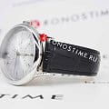 Мужские наручные часы Космос Космопорт K 058.11.33 — это сочетание традиций часового искусства 60-70-х годов и футуристического дизайна, вдохновленного космическими исследованиями. Они не только служат напоминанием о прошлом, но и побуждают задуматься о будущем, позволяя наслаждаться качеством и смыслом, вложенными в каждую деталь. Полированный корпус часов выполнен в виде силуэта летающей тарелки благодаря выпуклым формам стекла и нижней части корпуса. Стальные ушки, которые напоминают опоры летающей тарелки, завершает общий образ. На задней крышке часов выгравирован фантазийный сюжет – космическая станция будущего. Циферблат светло-серого цвета выполнен в ретро стиле с закруглёнными краями, что требует применения сложной технологии производства, характерной для часов прошлых лет. Кончик секундной стрелки повторяет эту форму, а на выпуклом градиентном циферблате выполнена шлифовка, напоминающая солнечные лучи. Индексы, изготовленные вручную и закрепленные на двух штифтах, добавляют изысканности. Также присутствуют ретроградные индикаторы даты и второго времени (24 часа), которые возвращаются в исходное положение одним движением.  Люминесцентное покрытиеЛюминесцентное покрытиеПозволяет считывать показания времени в темноте. Производители наносят на стрелки, часовые индексы, безель или поверхность циферблата светонакопительный состав, дающий холодное свечение. на часовой и минутной стрелках, а также на стрелках ретроградных индикаторов и окантовке циферблата создает эффект светящегося ореола в темноте. Форма минерального стеклаМинеральное стеклоМинеральное стекло представляет собой искусственно выращенный минерал кварца. Такое стекло отличается особой устойчивостью к повреждениям и царапинам. Уступает по некоторым качествам сапфировому стеклу., представляющего собой двояковыпуклую конструкцию, тщательно проработана. Такое стекло не искажает изображение на циферблате, потому что внутренняя поверхность остаётся плоской, создавая эффект линзы. Производственный процесс для достижения двух параллельно изогнутых поверхностей очень сложен, и требуется высокая точность, чтобы избежать повреждения стекла. Ремешок из черной натуральной кожи оснащён креплениями, которые позволяют легко снимать и надевать его без использования дополнительных инструментов. Заводная головка, застежка и ремешок украшены фирменным логотипом, что подчеркивает индивидуальность и стиль этих часов.