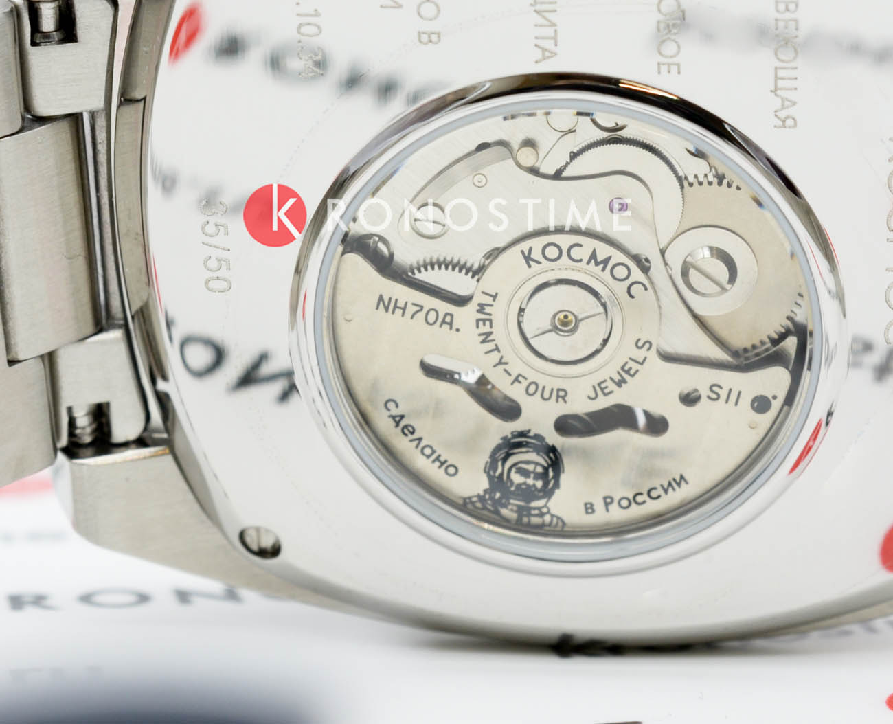 Мужские наручные часы Космос Спутник K 115.10.34 — это уникальная лимитированная серия, созданная в честь исторического запуска первого искусственного спутника Земли. В корпусе необычной круглой формы, выполненном из гипоаллергенной нержавеющей стали 316L, работает надежный механический механизм с автоподзаводом от японской компании Seiko. Прозрачная задняя крышка, закрепленная на четырех винтах, открывает вид на сложный механизм, а на самой крышке указан индивидуальный номер модели в формате хх/50. Скелетонизированный черный циферблат защищен сапфировым стекломСапфировое стеклоПрочный и надёжный материал из кристалла сапфира синтетического происхождения, характеризующийся особой твёрдостью и устойчивостью к царапинам и повреждениям. с антибликовым покрытием, которое обеспечивает максимальную устойчивость к царапинам и идеальную видимость в любых условиях. Украшением циферблата служат крупные стрелки с люминесцентным покрытиемЛюминесцентное покрытиеПозволяет считывать показания времени в темноте. Производители наносят на стрелки, часовые индексы, безель или поверхность циферблата светонакопительный состав, дающий холодное свечение., а также специальная апертура, окаймленная элементами, напоминающими антенны Спутника. Часовая и минутная стрелки отлично читаются благодаря своему размеру и светящемуся покрытию. Браслет литой конструкции из нержавеющей стали дополнен удобной застежкой-бабочкой с двумя боковыми кнопкамиЗастёжка "бабочка"Такой вид застёжки дополняется предохранителями, помогающими избежать случайного раскрытия браслета. Обладают изящным исполнением. , что гарантирует надежную фиксацию на руке. Водозащита до 10 атм (WR100) позволяет использовать часы при плавании и других водных видах спорта без акваланга. Коллекция Спутник — это выбор для ценителей истории космических достижений и современных технологий.