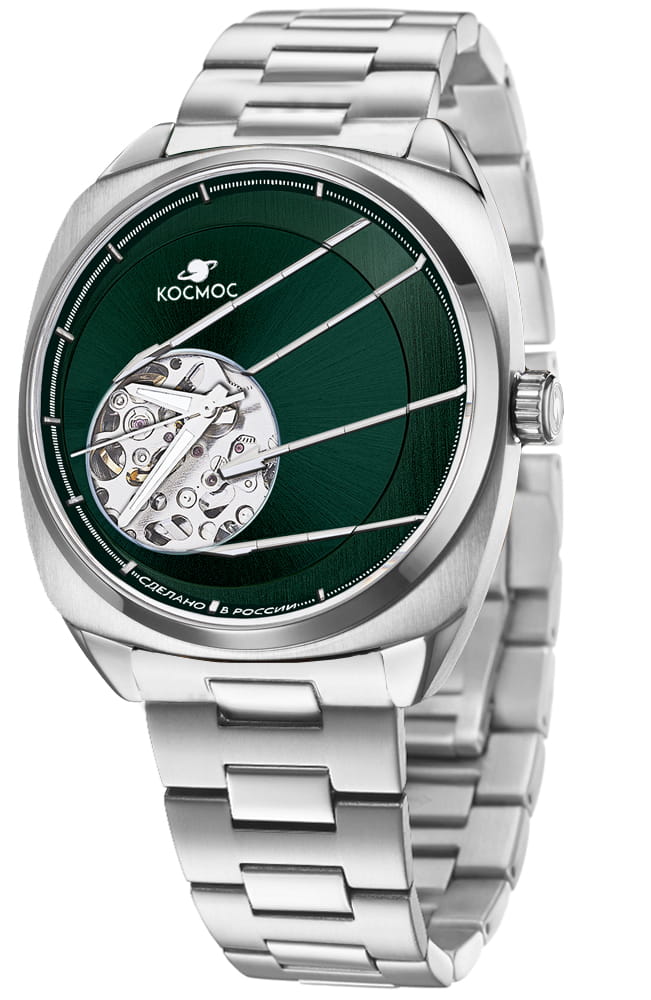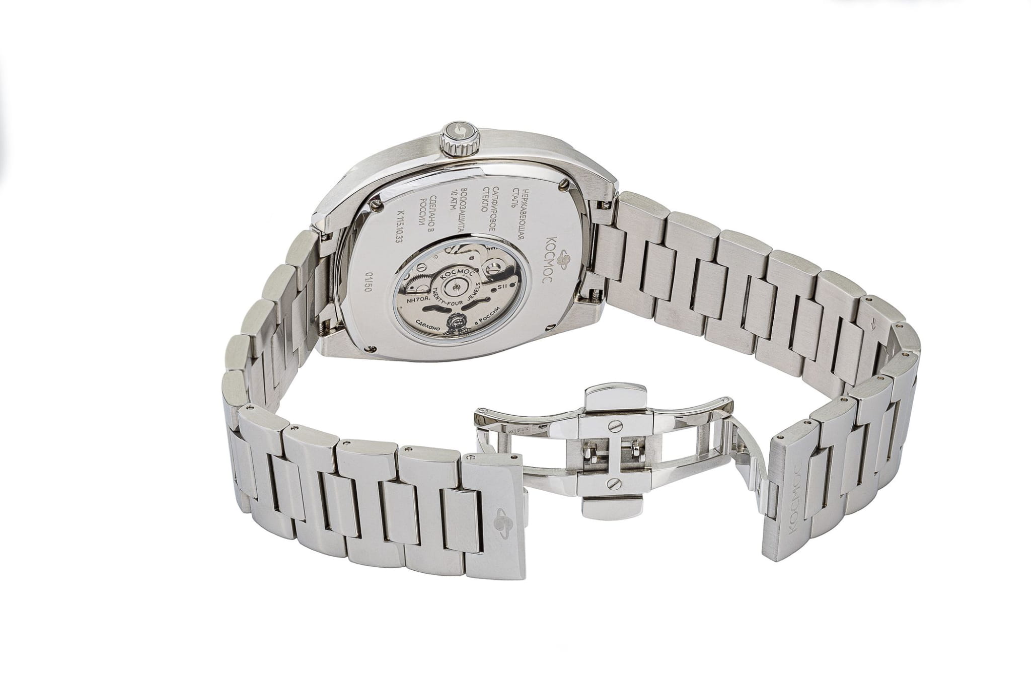 Мужские наручные часы Космос Спутник K 115.10.37 — это уникальная лимитированная серия, созданная в честь исторического запуска первого искусственного спутника Земли. В корпусе необычной круглой формы, выполненном из гипоаллергенной нержавеющей стали 316L, работает надежный механический механизм с автоподзаводом от японской компании Seiko. Прозрачная задняя крышка, закрепленная на четырех винтах, открывает вид на сложный механизм, а на самой крышке указан индивидуальный номер модели в формате хх/50. Скелетонизированный черный циферблат защищен сапфировым стекломСапфировое стеклоПрочный и надёжный материал из кристалла сапфира синтетического происхождения, характеризующийся особой твёрдостью и устойчивостью к царапинам и повреждениям. с антибликовым покрытием, которое обеспечивает максимальную устойчивость к царапинам и идеальную видимость в любых условиях. Украшением циферблата служат крупные стрелки с люминесцентным покрытиемЛюминесцентное покрытиеПозволяет считывать показания времени в темноте. Производители наносят на стрелки, часовые индексы, безель или поверхность циферблата светонакопительный состав, дающий холодное свечение., а также специальная апертура, окаймленная элементами, напоминающими антенны Спутника. Часовая и минутная стрелки отлично читаются благодаря своему размеру и светящемуся покрытию. Браслет литой конструкции из нержавеющей стали дополнен удобной застежкой-бабочкой с двумя боковыми кнопкамиЗастёжка "бабочка"Такой вид застёжки дополняется предохранителями, помогающими избежать случайного раскрытия браслета. Обладают изящным исполнением. , что гарантирует надежную фиксацию на руке. Водозащита до 10 атм (WR100) позволяет использовать часы при плавании и других водных видах спорта без акваланга. Коллекция Спутник — это выбор для ценителей истории космических достижений и современных технологий.