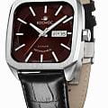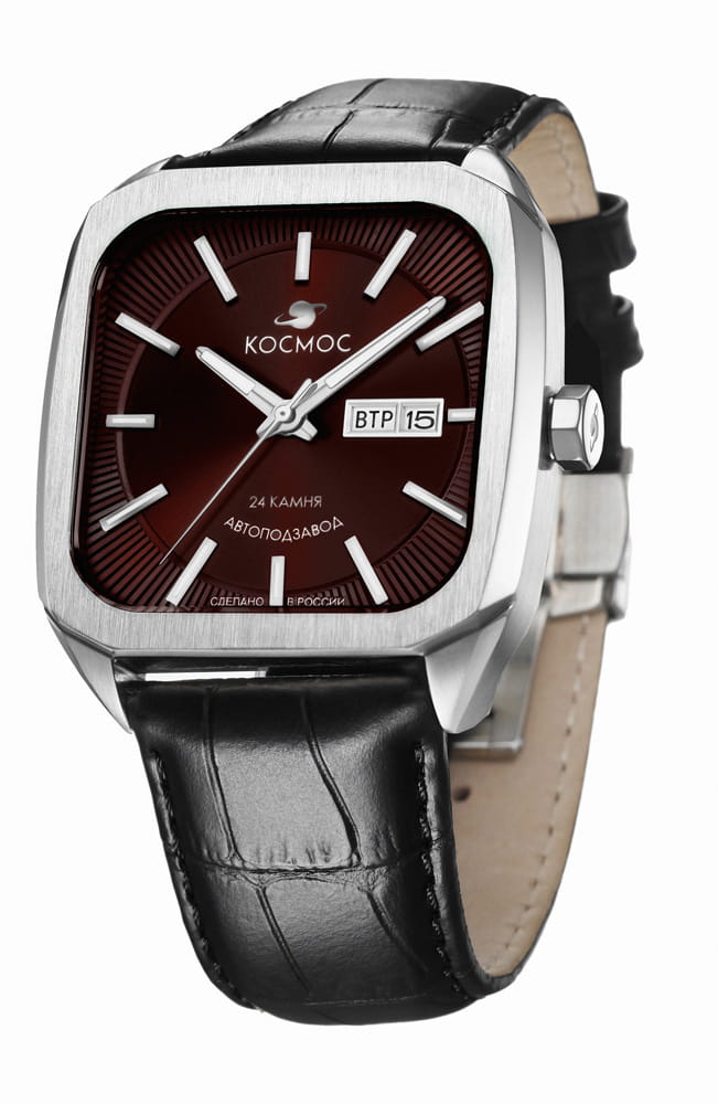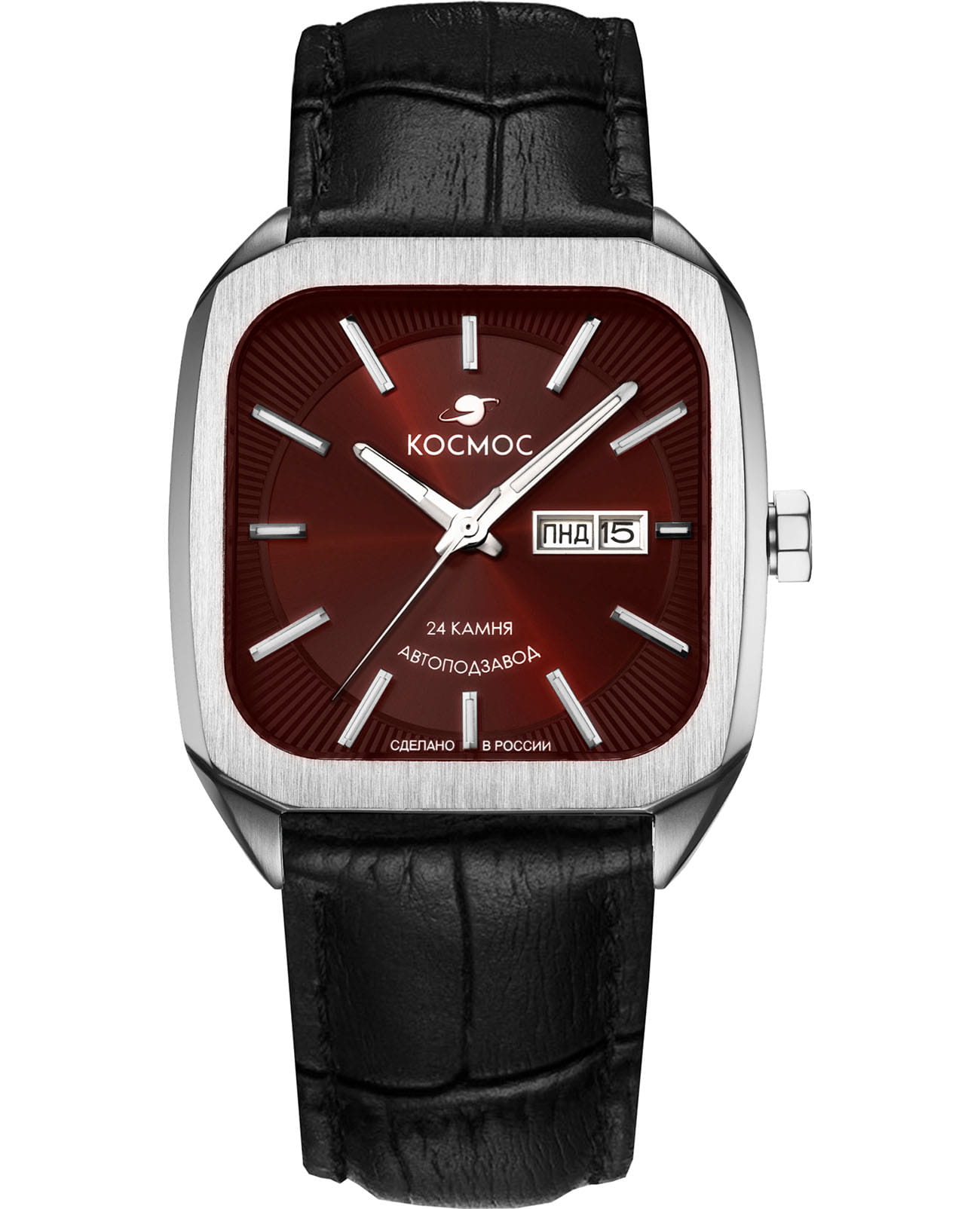 Мужские наручные часы Космос Марсоход K 213.11.38 — это уникальная лимитированная серия, созданная в честь одного из самых амбициозных проектов в истории космических исследований. Модель объединяет дух советского инженерного наследия с современными технологиями, создавая аксессуар, сочетающий прочность, функциональность и ретро-стиль. Часы оснащены механическим механизмом с автоподзаводом от Seiko TMI, известным своей надёжностью и точностью. Корпус выполнен из нержавеющей стали 316L в форме квадрата с закруглёнными углами и дополнен сочетанием зеркальной полировки и сатинированной отделки, что придаёт модели солидность и оригинальность. Циферблат красного цвета имеет двухуровневую структуру. Центральный уровень содержит три стрелки, часовая и минутная из которых оснащены люминесцентным покрытиемЛюминесцентное покрытиеПозволяет считывать показания времени в темноте. Производители наносят на стрелки, часовые индексы, безель или поверхность циферблата светонакопительный состав, дающий холодное свечение. для отличной читаемости даже в условиях слабого освещения. Индикация дня недели и даты представлена сразу на двух языках — русском и английском, что делает модель удобной для международного использования. Защиту циферблата обеспечивает сапфировое стеклоСапфировое стеклоПрочный и надёжный материал из кристалла сапфира синтетического происхождения, характеризующийся особой твёрдостью и устойчивостью к царапинам и повреждениям. с антибликовым покрытиемАнтибликовое покрытиеСлой оксида металла в 0,13-0,3 микрон, благодаря которому стекло часов не бликует и не отражает свет. Антибликовое покрытие уменьшает отражение света в 10 раз, обеспечивая отличную читаемость показателей циферблата., устойчивое к царапинам и повреждениям, гарантирующее чёткость восприятия информации при любом освещении. Заводная головка выполнена в форме гайки, что придаёт модели индустриальный шарм и подчёркивает её техническую направленность. Задняя крышка — прозрачная и закреплена на четырёх винтах, а также содержит индивидуальный номер модели, что подчёркивает её эксклюзивность. Первый выпуск ограничен 50 экземплярами с номерами от 01/50 до 50/50, второй выпуск — 150 штуками с номерами от 051/200 до 200/200. Ремешок изготовлен из натуральной кожи чёрного цвета и оснащён застёжкой с фирменным логотипом. Ширина ремешка составляет 26 мм, что обеспечивает плотное и комфортное прилегание на запястье. Часы обладают водонепроницаемостью , что позволяет использовать их при плавании и других водных активностях. Эти часы станут универсальным аксессуаром для тех, кто ценит сочетание истории, технологичности и стиля — идеальный выбор для уверенных в себе мужчин, следящих за своим имиджем и предпочитающих выделяться.