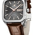 Мужские наручные часы Космос Марсоход K 213.12.34 — это уникальная лимитированная серия, посвященная аппарату, способному передвигаться по поверхности Красной планеты. Марсоход ассоциируется с брутальностью, мастерством и технической сложностью. Наша страна дважды запускала подобные аппараты еще в 70-х годах прошлого века. Дизайн часов серии Марсоход вдохновлен лучшими работами советских мастеров, сочетая современные технологии часового искусства с обаянием стиля ретро. Корпус в форме квадрата с закругленными углами выполнен из нержавеющей стали марки 316L, украшенной зеркальной полировкой и сатинированием. Удобная заводная головка имеет форму гайки, что добавляет модели индустриальный шарм. Задняя крышка прозрачная, закрепленная на четырех винтах, и позволяет увидеть работу механизма TMI с подвижным ротором, на котором гравируется надпись «Сделано в России». Также здесь представлена гравировка с изображением космонавта, придающая часам особую значимость. Водостойкость достигает 10 атм (WR100), что позволяет использовать часы при плавании и других водных видах спорта. На задней крышке указан индивидуальный номер модели в формате от 01/50 до 50/50 (первый выпуск) или от 051/100 до 100/100 (второй выпуск). Объемный циферблат состоит из двух уровней. В центре движутся три стрелки, часовая и минутная из которых имеют люминесцентное покрытиеЛюминесцентное покрытиеПозволяет считывать показания времени в темноте. Производители наносят на стрелки, часовые индексы, безель или поверхность циферблата светонакопительный состав, дающий холодное свечение., позволяющее определять время даже в темноте. Индексы накладные, как и стальная рамка, выделяющая сдвоенное окошко даты и дня недели, где день недели отображается на двух языках — русском и английском. Циферблат защищен прочным сапфировым стеклом с антибликовым покрытиемСапфировое стеклоПрочный и надёжный материал из кристалла сапфира синтетического происхождения, характеризующийся особой твёрдостью и устойчивостью к царапинам и повреждениям., обеспечивающим отличную читаемость показаний в любых условиях. Кожаный ремешок оснащен удобной застёжкой «бабочка» с кнопкамиЗастёжка "бабочка"Такой вид застёжки дополняется предохранителями, помогающими избежать случайного раскрытия браслета. Обладают изящным исполнением. , которая сводит к минимуму вероятность потери. Коллекция Марсоход — идеальный выбор для ценителей истории космических достижений и современных технологий.