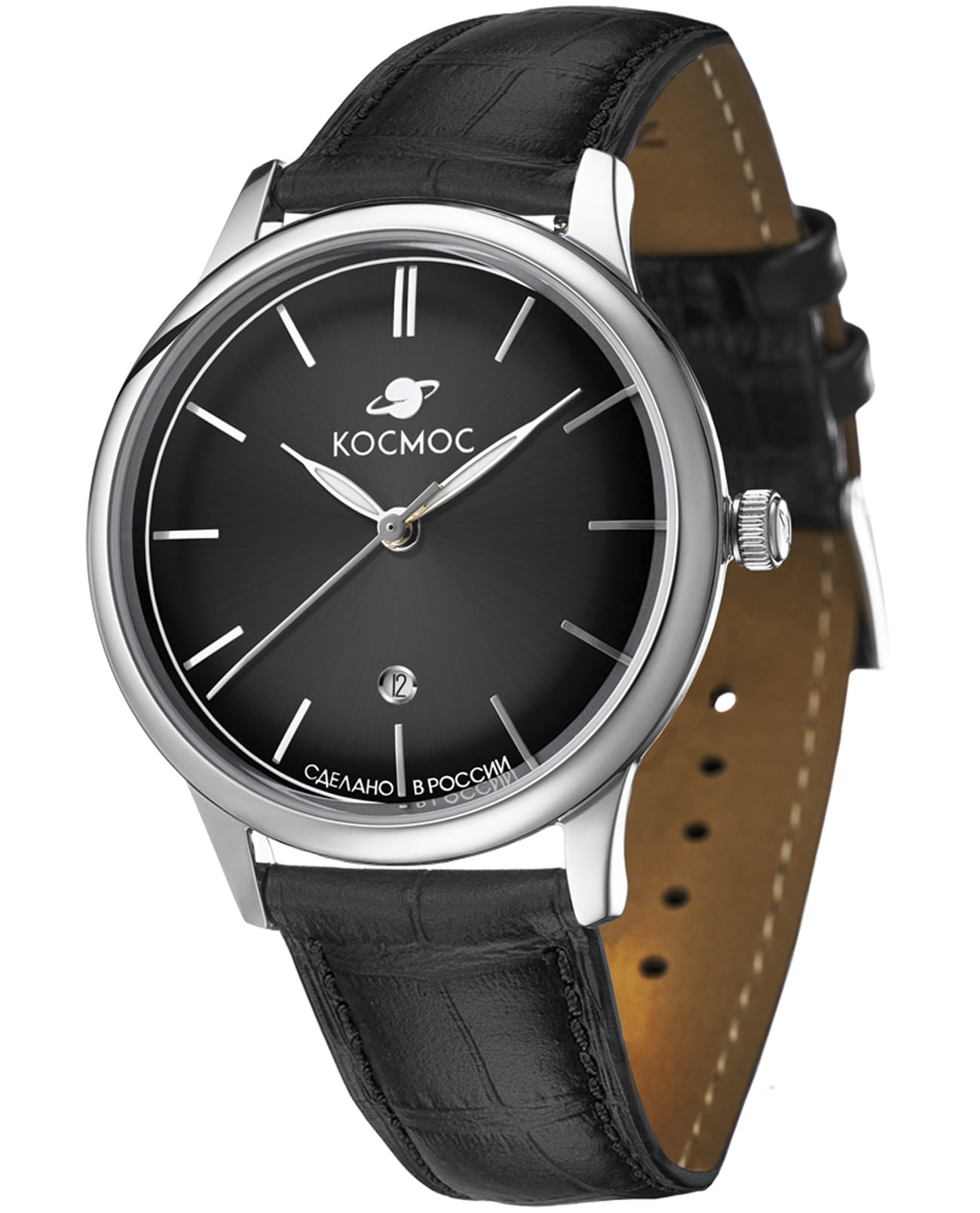 Женские наручные часы Космос Созвездие K 601.11.31 — это сочетание традиций часового искусства 60-70-х годов и футуристического дизайна, вдохновленного космическими исследованиями. Они не только служат напоминанием о прошлом, но и побуждают задуматься о будущем, позволяя наслаждаться качеством и смыслом, вложенными в каждую деталь. Полированный корпус часов выполнен в виде силуэта летающей тарелки благодаря выпуклым формам стекла и нижней части корпуса. Стальные ушки, которые напоминают опоры летающей тарелки, завершает общий образ. На задней крышке часов выгравирован фантазийный сюжет – космическая станция будущего. Название коллекции Созвездие – идеально отражает разнообразие моделей с яркими, но тщательно подобранными цветами. Черный циферблат выполнен в ретро стиле, с выгнутыми краями, что требует применения сложной производственной технологии. Такой дизайн был характерен для часов прошлых лет. Кончик секундной стрелки также изогнут, следуя форме циферблата. Выпуклый градиентный циферблат украшен шлифовкой в стиле солнечных лучей и ручными индексами, которые фиксируются на двух штифтах. Окошко даты обрамлено стальной рамкой, что добавляет часам утонченности и элегантности. Часовая и минутная стрелки, а также круг по краю циферблата, напоминающий ореол Земли, с люминесцентным покрытиемЛюминесцентное покрытиеПозволяет считывать показания времени в темноте. Производители наносят на стрелки, часовые индексы, безель или поверхность циферблата светонакопительный состав, дающий холодное свечение., которое светится в темноте, создавая завораживающий эффект. Форма минерального стеклаМинеральное стеклоМинеральное стекло представляет собой искусственно выращенный минерал кварца. Такое стекло отличается особой устойчивостью к повреждениям и царапинам. Уступает по некоторым качествам сапфировому стеклу. тщательно продумана: оно выгнуто как снаружи, так и изнутри. Такая конструкция исключает искажения изображения на циферблате, в отличие от обычного стекла. Ремешок модели сделан из натуральной кожи черного цвета. Заводная головка, застежка и ремешок украшены фирменным логотипом.