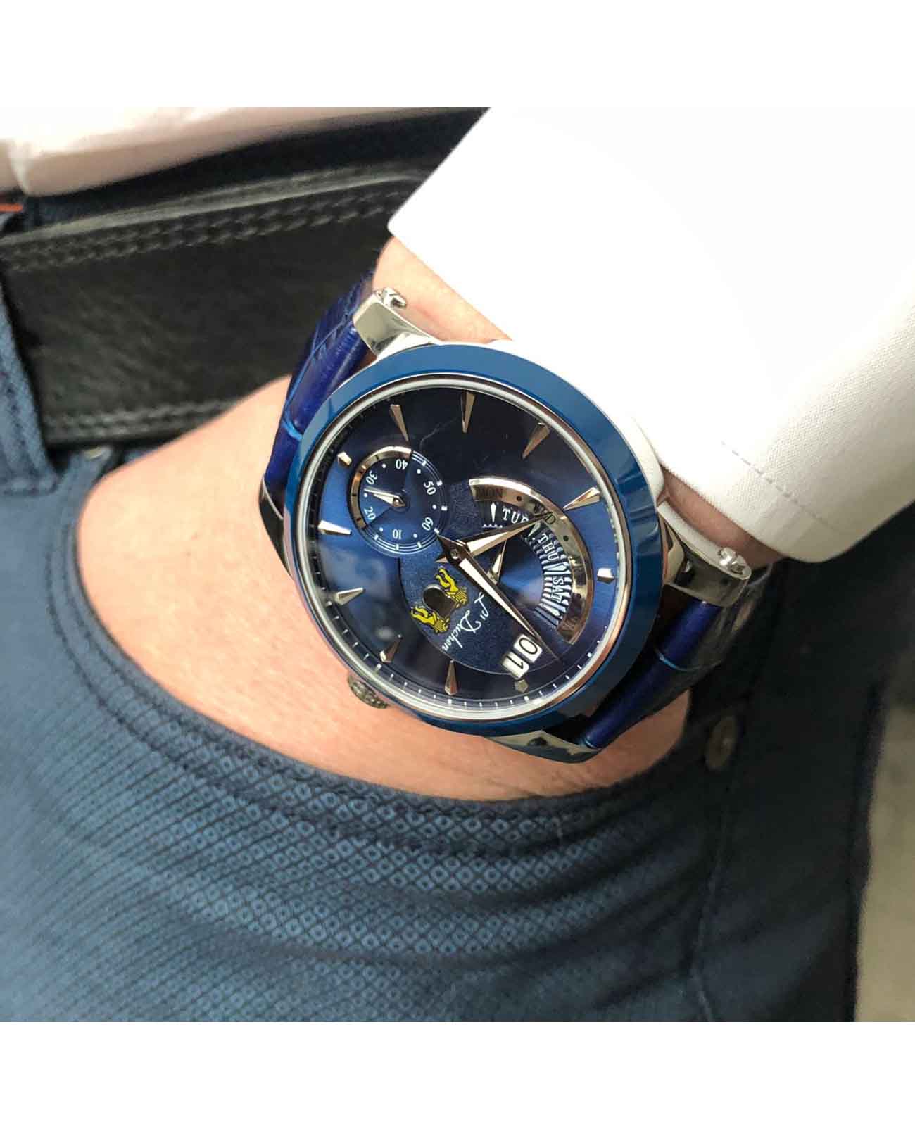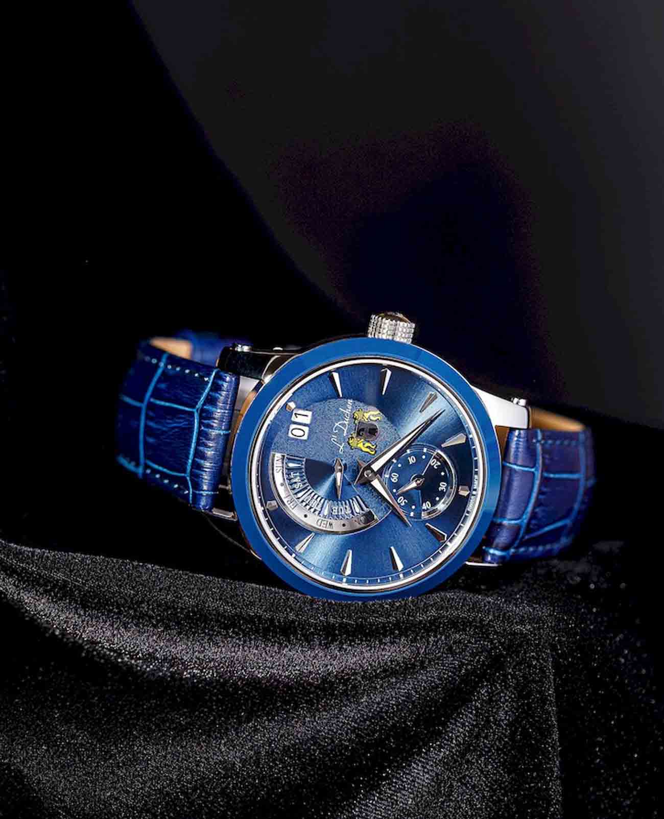Мужские швейцарские часы L'Duchen Aerostat D237.31.BP, кварцевый механизм с высокой точностью. Сапфировое стеклоСапфировое стеклоПрочный и надёжный материал из кристалла сапфира синтетического происхождения, характеризующийся особой твёрдостью и устойчивостью к царапинам и повреждениям. устойчивое к появлению царапин, обладающее высокой прозрачностью. Корпус часов выполнен из нержавеющей стали. БезельБезельВнешний ободок, закрепляющий стекло. В спортивных часах так называется поворотное кольцо с делениями на циферблате, выполняет роль таймера – замеряет отрезки времени на шкале. Неподвижный безель – элемент декора. Однонаправленно вращающийся безель на дайверских часах позволяет фиксировать моменты погружения и выныривания на поверхность. из керамики. Стрелки с люминесцентным покрытиемЛюминесцентное покрытиеПозволяет считывать показания времени в темноте. Производители наносят на стрелки, часовые индексы, безель или поверхность циферблата светонакопительный состав, дающий холодное свечение.. Класс водозащиты: 100 метров, позволит плавать, нырять и заниматься другими водными видами спорта. Кожаный ремешок на застёжке «бабочка» с кнопкамиЗастёжка "бабочка"Такой вид застёжки дополняется предохранителями, помогающими избежать случайного раскрытия браслета. Обладают изящным исполнением. .