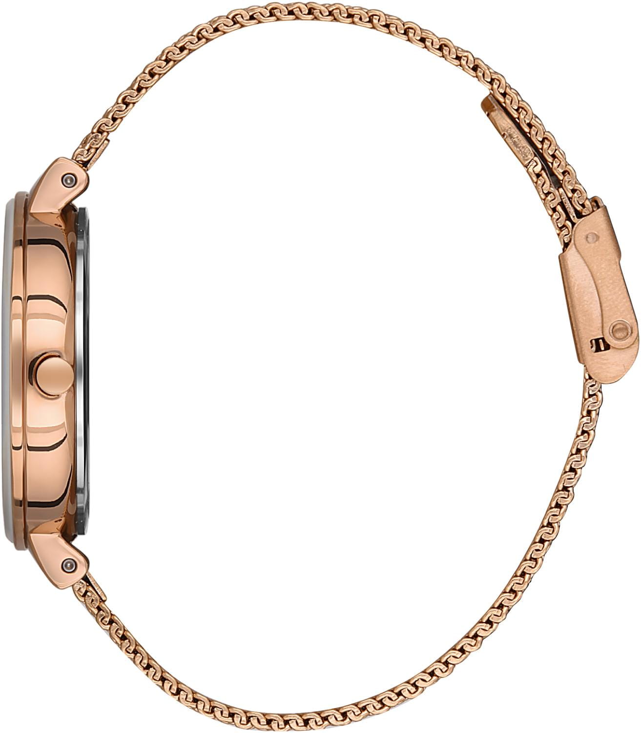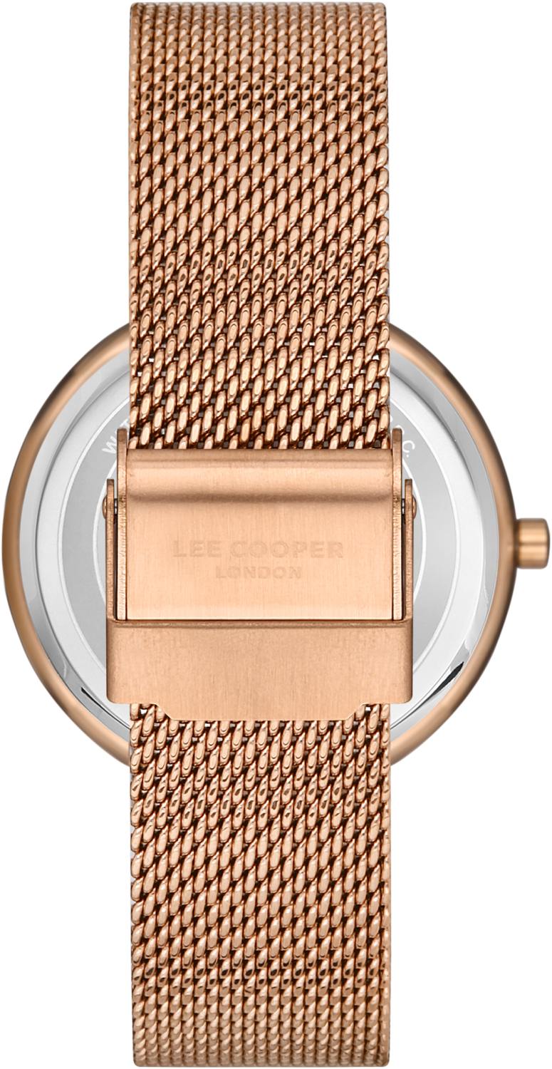 Lee Cooper LC07056.430 — изысканные женские часы, сочетающие элегантный дизайн и практичность. Корпус диаметром 34,5 мм выполнен из суперметалла с IP-покрытиемIP-покрытиеМетод ионного напыления. Демонстрирует повышенную устойчивость к истиранию, окислению и химическим веществам. Под воздействием высокого давления и температуры около 1500°C молекулы металла надёжно соединяются с частицами корпуса часов. в розовом оттенке, придающим модели утончённый вид. Минеральное стеклоМинеральное стеклоМинеральное стекло представляет собой искусственно выращенный минерал кварца. Такое стекло отличается особой устойчивостью к повреждениям и царапинам. Уступает по некоторым качествам сапфировому стеклу. с закалённой поверхностью защищает циферблат от повреждений. Серебристый циферблат с золотистыми стрелками выполнен в минималистичном стиле, подчёркивая изящность дизайна. Миланский браслет из нержавеющей стали с IP-покрытиемIP-покрытиеМетод ионного напыления. Демонстрирует повышенную устойчивость к истиранию, окислению и химическим веществам. Под воздействием высокого давления и температуры около 1500°C молекулы металла надёжно соединяются с частицами корпуса часов. в розовом цвете обеспечивает удобную посадку на запястье. Водонепроницаемость 30 метров делает модель устойчивой к случайным брызгам и влаге, что подходит для повседневного ношения.