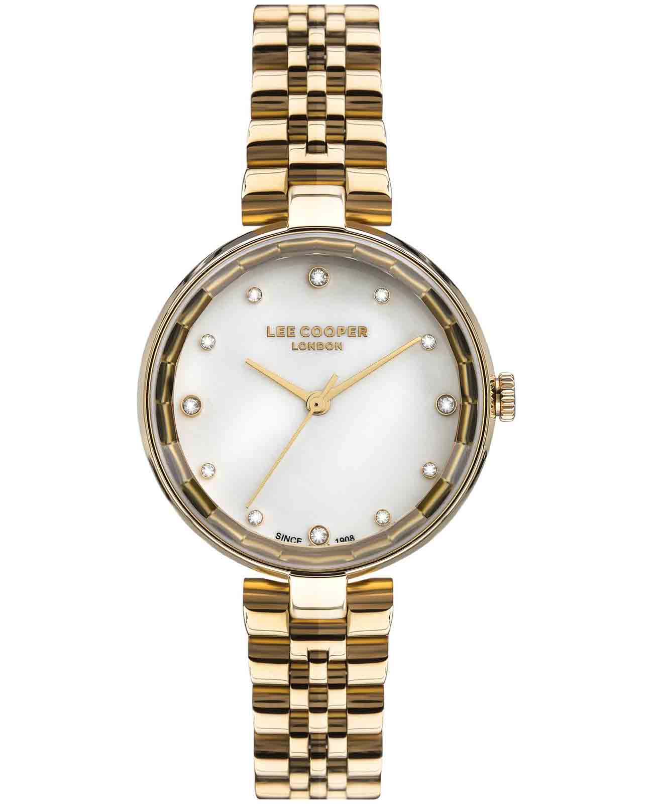 Женские наручные часы Lee Cooper LC07245.120 — это элегантная модель с утончённым дизайном. Корпус диаметром 33 мм выполнен из суперметалла с IP-покрытиемIP-покрытиеМетод ионного напыления. Демонстрирует повышенную устойчивость к истиранию, окислению и химическим веществам. Под воздействием высокого давления и температуры около 1500°C молекулы металла надёжно соединяются с частицами корпуса часов., что придаёт часам изысканный вид. Перламутровый циферблат украшен изящными вставками из циркония и стрелками, обеспечивая удобное считывание времени. Циферблат защищён минеральным стекломМинеральное стеклоМинеральное стекло представляет собой искусственно выращенный минерал кварца. Такое стекло отличается особой устойчивостью к повреждениям и царапинам. Уступает по некоторым качествам сапфировому стеклу., устойчивым к царапинам. Часы работают на кварцевом механизме, обеспечивая точность хода. Браслет из нержавеющей стали с раскладной застёжкойРаскладная застёжкаТакой тип застёжки используется только на браслетах из металла. Она никогда не раскрывается полностью, происходит разделение на 2 и более частей. Раскладывающая застёжка снизит вероятность потери часов к минимуму. гарантирует комфортное ношение и надёжную фиксацию на запястье. Водозащита 30 метров защищает часы от случайных брызг и дождя, делая их подходящими для повседневного использования.