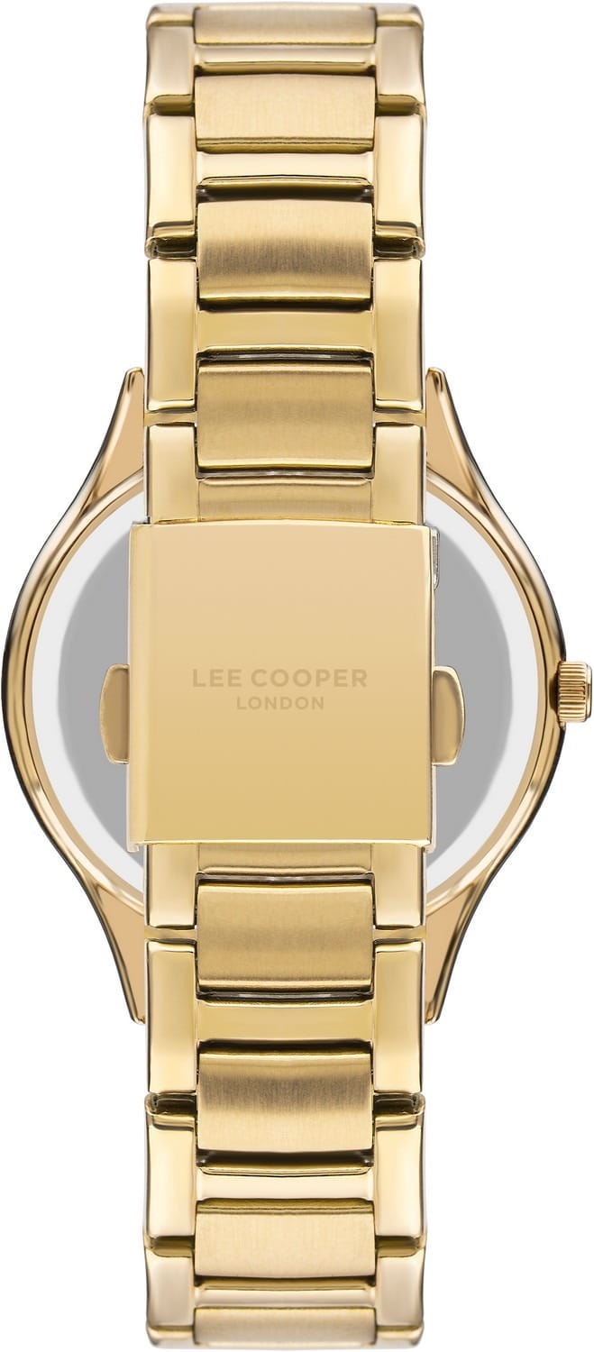Женские наручные часы Lee Cooper LC07480.120 — это элегантная модель с утончённым дизайном. Корпус диаметром 35 мм выполнен из нержавеющей стали, а безельБезельВнешний ободок, закрепляющий стекло. В спортивных часах так называется поворотное кольцо с делениями на циферблате, выполняет роль таймера – замеряет отрезки времени на шкале. Неподвижный безель – элемент декора. Однонаправленно вращающийся безель на дайверских часах позволяет фиксировать моменты погружения и выныривания на поверхность. золотистого цвета с IP-покрытиемIP-покрытиеМетод ионного напыления. Демонстрирует повышенную устойчивость к истиранию, окислению и химическим веществам. Под воздействием высокого давления и температуры около 1500°C молекулы металла надёжно соединяются с частицами корпуса часов. и кристаллами придаёт часам изысканный вид. Перламутровый циферблат украшен изящными метками и стрелками, обеспечивая удобное считывание времени. Циферблат защищён минеральным стекломМинеральное стеклоМинеральное стекло представляет собой искусственно выращенный минерал кварца. Такое стекло отличается особой устойчивостью к повреждениям и царапинам. Уступает по некоторым качествам сапфировому стеклу., устойчивым к царапинам. Часы работают на кварцевом механизме, обеспечивая точность хода. Браслет из нержавеющей стали с раскладной застёжкойРаскладная застёжкаТакой тип застёжки используется только на браслетах из металла. Она никогда не раскрывается полностью, происходит разделение на 2 и более частей. Раскладывающая застёжка снизит вероятность потери часов к минимуму. гарантирует комфортное ношение и надёжную фиксацию на запястье. Водозащита 30 метров защищает часы от случайных брызг и дождя, делая их подходящими для повседневного использования.