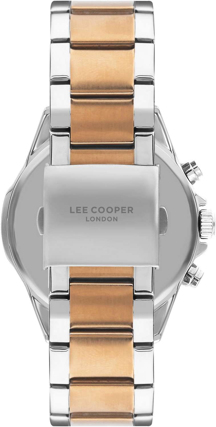 Мужские часы Lee Cooper LC07486.550 — элегантная модель с функциональными возможностями для повседневного использования. Круглый корпус из суперметалла диаметром 46 мм придаёт часам классический и современный вид. Стрелки и метки покрыты люминесцентным покрытиемЛюминесцентное покрытиеПозволяет считывать показания времени в темноте. Производители наносят на стрелки, часовые индексы, безель или поверхность циферблата светонакопительный состав, дающий холодное свечение., обеспечивая удобное считывание показаний в условиях недостаточного освещения. Циферблат защищён минеральным стекломМинеральное стеклоМинеральное стекло представляет собой искусственно выращенный минерал кварца. Такое стекло отличается особой устойчивостью к повреждениям и царапинам. Уступает по некоторым качествам сапфировому стеклу., устойчивым к царапинам. Часы работают на кварцевом механизме, обеспечивающем точность хода. Браслет из нержавеющей стали с раскладной застёжкойРаскладная застёжкаТакой тип застёжки используется только на браслетах из металла. Она никогда не раскрывается полностью, происходит разделение на 2 и более частей. Раскладывающая застёжка снизит вероятность потери часов к минимуму. гарантирует удобную посадку и надёжную фиксацию на запястье. Водозащита 50 метров защищает часы от брызг и дождя, делая их подходящими для повседневного использования. БезельБезельВнешний ободок, закрепляющий стекло. В спортивных часах так называется поворотное кольцо с делениями на циферблате, выполняет роль таймера – замеряет отрезки времени на шкале. Неподвижный безель – элемент декора. Однонаправленно вращающийся безель на дайверских часах позволяет фиксировать моменты погружения и выныривания на поверхность. с IP-покрытиемIP-покрытиеМетод ионного напыления. Демонстрирует повышенную устойчивость к истиранию, окислению и химическим веществам. Под воздействием высокого давления и температуры около 1500°C молекулы металла надёжно соединяются с частицами корпуса часов.. Часы имеют встроенный календарь с отображением даты, дня недели и 24-часового формата, что делает их идеальными для организации вашего дня.