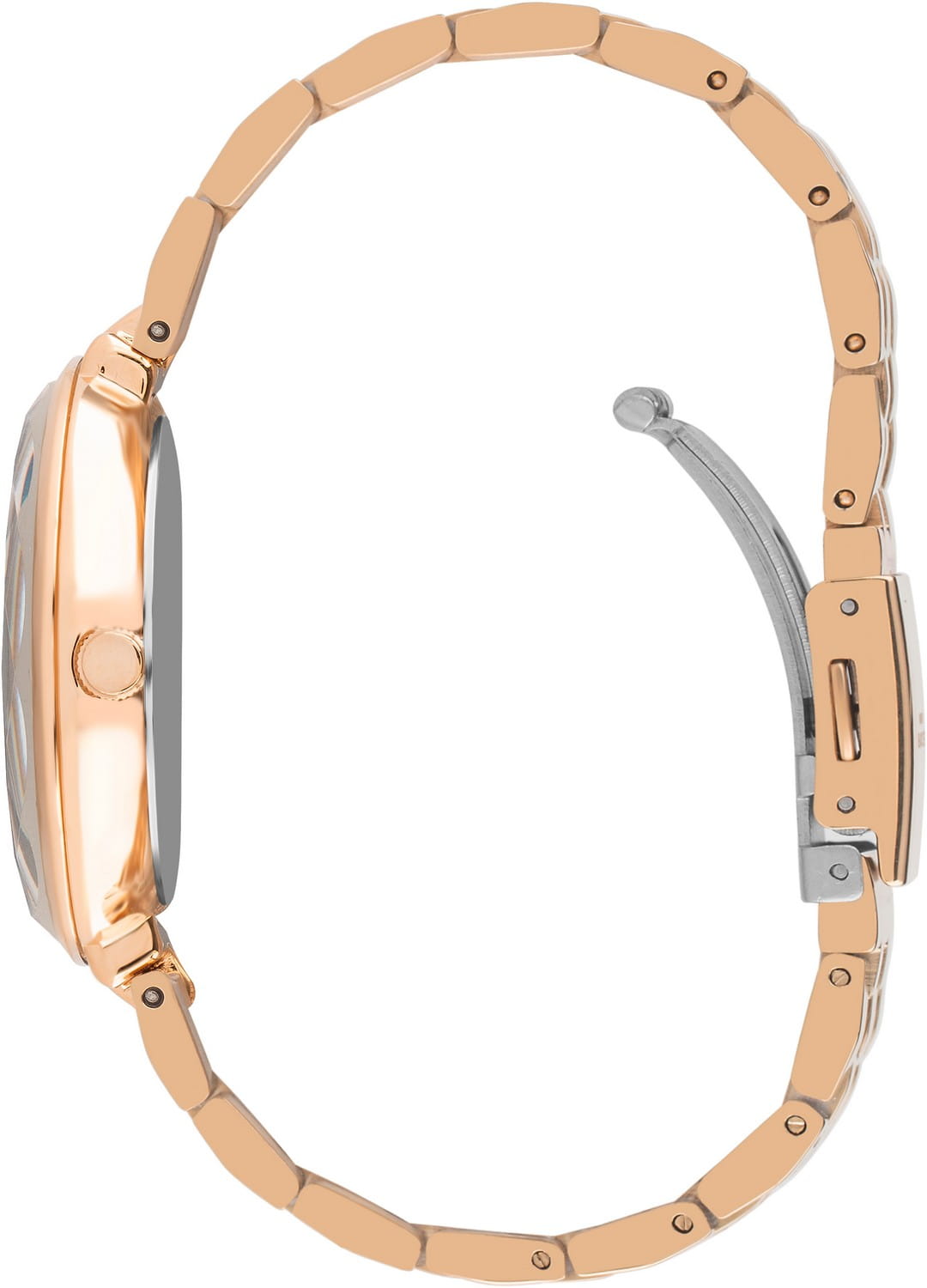 Женские часы Lee Cooper LC07502.420 — это стильное сочетание элегантности и современного дизайна. Круглый корпус диаметром 34 мм выполнен из суперметалла с IP-покрытиемIP-покрытиеМетод ионного напыления. Демонстрирует повышенную устойчивость к истиранию, окислению и химическим веществам. Под воздействием высокого давления и температуры около 1500°C молекулы металла надёжно соединяются с частицами корпуса часов. цвета розового золота, что придает модели особый блеск. Серый циферблат защищен минеральным стекломМинеральное стеклоМинеральное стекло представляет собой искусственно выращенный минерал кварца. Такое стекло отличается особой устойчивостью к повреждениям и царапинам. Уступает по некоторым качествам сапфировому стеклу., обеспечивающим устойчивость к царапинам. Метки в виде штрихов. Часы оснащены надежным кварцевым механизмом, а металлический браслет с IP-покрытиемIP-покрытиеМетод ионного напыления. Демонстрирует повышенную устойчивость к истиранию, окислению и химическим веществам. Под воздействием высокого давления и температуры около 1500°C молекулы металла надёжно соединяются с частицами корпуса часов. на раскладной застёжкеРаскладная застёжкаТакой тип застёжки используется только на браслетах из металла. Она никогда не раскрывается полностью, происходит разделение на 2 и более частей. Раскладывающая застёжка снизит вероятность потери часов к минимуму. гарантирует комфортную посадку на запястье. Стрелки с люминесцентным покрытиемЛюминесцентное покрытиеПозволяет считывать показания времени в темноте. Производители наносят на стрелки, часовые индексы, безель или поверхность циферблата светонакопительный состав, дающий холодное свечение. позволяют легко считывать время даже в условиях недостаточного освещения. Водозащита 30 метров защищает модель от случайных брызг и дождя. Lee Cooper  — отличный выбор для тех, кто ценит утонченность и качество.