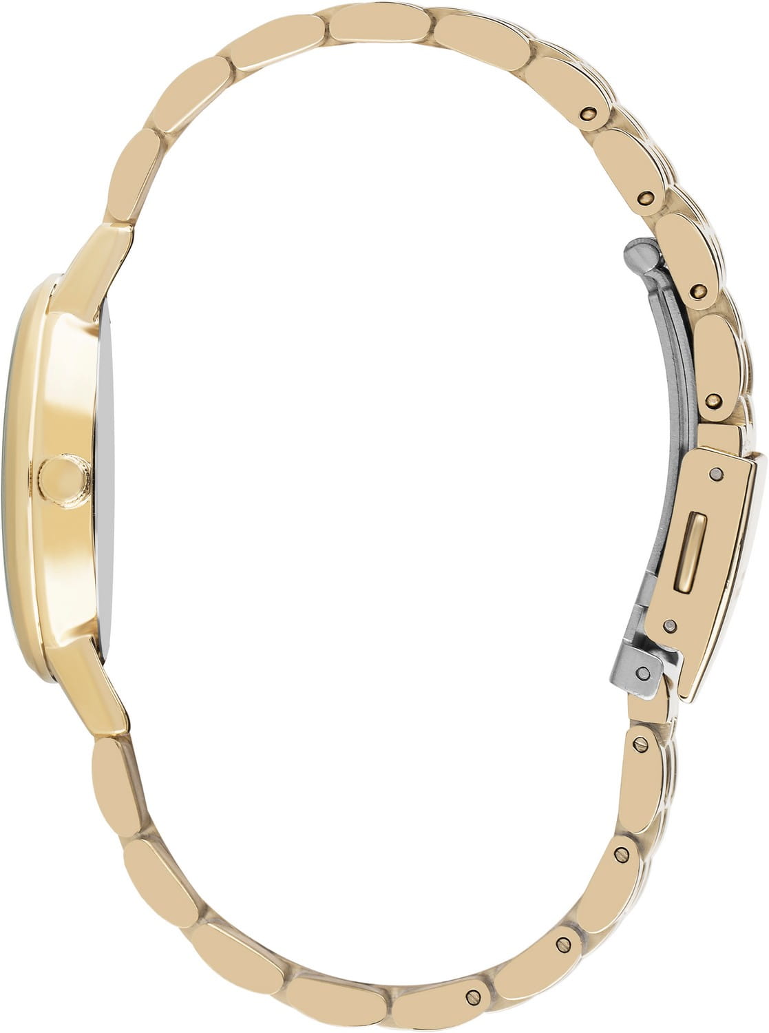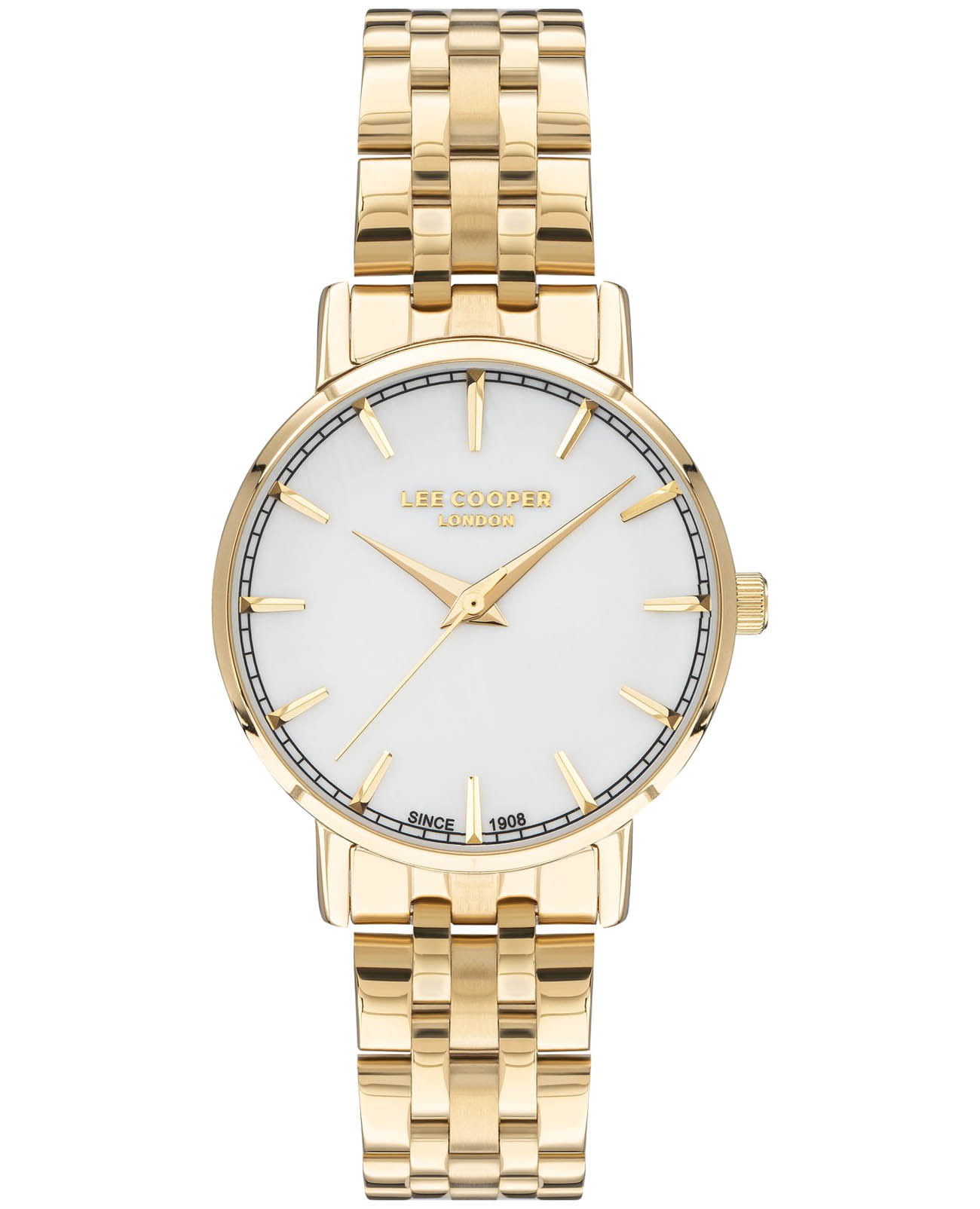 Женские часы Lee Cooper LC07503.120 — это стильное сочетание элегантности и современного дизайна. Круглый корпус диаметром 34 мм выполнен из суперметалла с IP-покрытиемIP-покрытиеМетод ионного напыления. Демонстрирует повышенную устойчивость к истиранию, окислению и химическим веществам. Под воздействием высокого давления и температуры около 1500°C молекулы металла надёжно соединяются с частицами корпуса часов. золотого цвета, что придает модели особый блеск. Белый циферблат защищен минеральным стекломМинеральное стеклоМинеральное стекло представляет собой искусственно выращенный минерал кварца. Такое стекло отличается особой устойчивостью к повреждениям и царапинам. Уступает по некоторым качествам сапфировому стеклу., обеспечивающим устойчивость к царапинам. Метки в виде штрихов. Часы оснащены надежным кварцевым механизмом, а металлический браслет с IP-покрытиемIP-покрытиеМетод ионного напыления. Демонстрирует повышенную устойчивость к истиранию, окислению и химическим веществам. Под воздействием высокого давления и температуры около 1500°C молекулы металла надёжно соединяются с частицами корпуса часов. на раскладной застёжкеРаскладная застёжкаТакой тип застёжки используется только на браслетах из металла. Она никогда не раскрывается полностью, происходит разделение на 2 и более частей. Раскладывающая застёжка снизит вероятность потери часов к минимуму. гарантирует комфортную посадку на запястье. Водозащита 30 метров защищает модель от случайных брызг и дождя. Lee Cooper — отличный выбор для тех, кто ценит утонченность и качество.