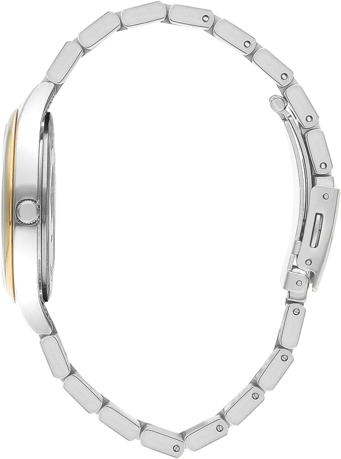 Женские наручные часы Lee Cooper LC07568.270 — это изысканная модель, сочетающая элегантный дизайн и практичность. Корпус диаметром 36 мм выполнен из нержавеющей стали в сочетании серебристого и золотистого оттенков, придавая часам уникальный и утончённый вид. А безельБезельВнешний ободок, закрепляющий стекло. В спортивных часах так называется поворотное кольцо с делениями на циферблате, выполняет роль таймера – замеряет отрезки времени на шкале. Неподвижный безель – элемент декора. Однонаправленно вращающийся безель на дайверских часах позволяет фиксировать моменты погружения и выныривания на поверхность. золотистого цвета с IP-покрытиемIP-покрытиеМетод ионного напыления. Демонстрирует повышенную устойчивость к истиранию, окислению и химическим веществам. Под воздействием высокого давления и температуры около 1500°C молекулы металла надёжно соединяются с частицами корпуса часов. придает модели особый блеск. Зелёный циферблат с аналоговым отображением времени добавляет свежий и стильный акцент, делая часы привлекательными для различных случаев. Модель оснащена надёжным кварцевым механизмом, обеспечивающим точность и долговечность. Минеральное стеклоМинеральное стеклоМинеральное стекло представляет собой искусственно выращенный минерал кварца. Такое стекло отличается особой устойчивостью к повреждениям и царапинам. Уступает по некоторым качествам сапфировому стеклу. защищает циферблат от повреждений и царапин, сохраняя его презентабельный вид. Водонепроницаемость 30 метров защищает часы от случайных брызг, что делает их подходящими для повседневных ситуаций, таких как мытьё рук или прогулки под лёгким дождём. Раскладная застёжкаРаскладная застёжкаТакой тип застёжки используется только на браслетах из металла. Она никогда не раскрывается полностью, происходит разделение на 2 и более частей. Раскладывающая застёжка снизит вероятность потери часов к минимуму. обеспечивает удобную посадку и надёжность при ношении. В целом, эти часы являются отличным выбором для тех, кто ищет аксессуар, объединяющий классический стиль, уникальное цветовое решение и функциональность. Их гармоничное сочетание серебристых и золотистых оттенков с элегантным зелёным циферблатом и качественным механизмом делает их идеальным дополнением к любому гардеробу — от официального до повседневного.