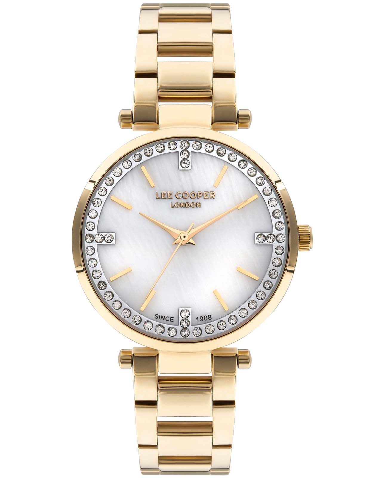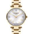 Женские часы Lee Cooper LC07591.120 — это стильное сочетание элегантности и современного дизайна. Круглый корпус диаметром 33 мм выполнен из суперметалла с IP-покрытиемIP-покрытиеМетод ионного напыления. Демонстрирует повышенную устойчивость к истиранию, окислению и химическим веществам. Под воздействием высокого давления и температуры около 1500°C молекулы металла надёжно соединяются с частицами корпуса часов. золотого цвета. Серебристый циферблат инкрустирован цирконами, что придает модели особый блеск и защищен минеральным стекломМинеральное стеклоМинеральное стекло представляет собой искусственно выращенный минерал кварца. Такое стекло отличается особой устойчивостью к повреждениям и царапинам. Уступает по некоторым качествам сапфировому стеклу., обеспечивающим устойчивость к царапинам. Центральные часовая, минутная и секундная стрелки. Часы оснащены надежным кварцевым механизмом, источник питания - батарейка. Металлический браслет с IP-покрытиемIP-покрытиеМетод ионного напыления. Демонстрирует повышенную устойчивость к истиранию, окислению и химическим веществам. Под воздействием высокого давления и температуры около 1500°C молекулы металла надёжно соединяются с частицами корпуса часов. на раскладной застёжкеРаскладная застёжкаТакой тип застёжки используется только на браслетах из металла. Она никогда не раскрывается полностью, происходит разделение на 2 и более частей. Раскладывающая застёжка снизит вероятность потери часов к минимуму. гарантирует комфортную посадку на запястье. Водозащита 30 метров защищает модель от случайных брызг и дождя. Lee Cooper — отличный выбор для тех, кто ценит утонченность и качество.