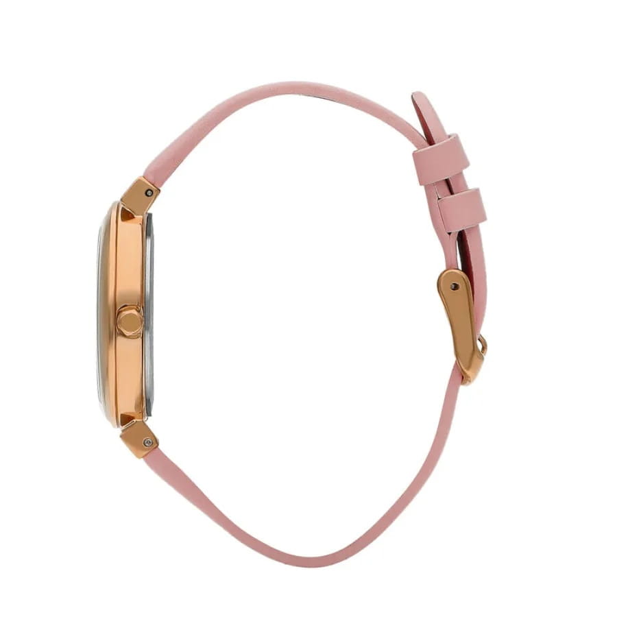 Женские кварцевые часы Lee Cooper LC07624.438 — это элегантный аксессуар с классическим дизайном. Корпус диаметром 34 мм выполнен из суперметалла с IP-покрытиемIP-покрытиеМетод ионного напыления. Демонстрирует повышенную устойчивость к истиранию, окислению и химическим веществам. Под воздействием высокого давления и температуры около 1500°C молекулы металла надёжно соединяются с частицами корпуса часов. жёлтого золота. Циферблат серебристого цвета оформлен индексами и арабскими цифрами. Циферблат защищён минеральным стекломМинеральное стеклоМинеральное стекло представляет собой искусственно выращенный минерал кварца. Такое стекло отличается особой устойчивостью к повреждениям и царапинам. Уступает по некоторым качествам сапфировому стеклу.. Часы оснащены кожаным ремешком розового цвета с классической пряжкой. Водонепроницаемость 30 м позволяет использовать часы в повседневных условиях, защищая от случайных брызг и капель дождя. Сочетание лаконичного стиля и качественного исполнения делает эти часы универсальным выбором на каждый день.