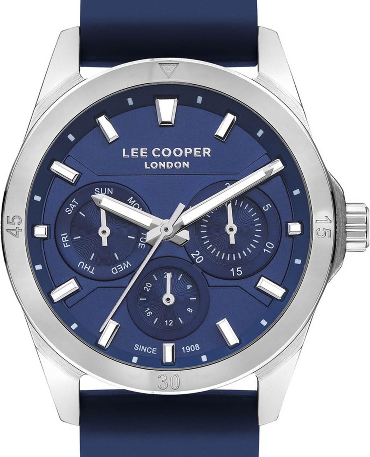 Женские кварцевые часы Lee Cooper LC07625.399 — это мультифункциональный аксессуар с лаконичным дизайном. Корпус диаметром 36 мм выполнен из суперметалла серебристого цвета. Циферблат синего цвета оформлен индексами и дополнен окошками даты, дня недели и 24-часового индикатора. Циферблат защищён минеральным стекломМинеральное стеклоМинеральное стекло представляет собой искусственно выращенный минерал кварца. Такое стекло отличается особой устойчивостью к повреждениям и царапинам. Уступает по некоторым качествам сапфировому стеклу.. Стрелки и метки с люминесцентным покрытиемЛюминесцентное покрытиеПозволяет считывать показания времени в темноте. Производители наносят на стрелки, часовые индексы, безель или поверхность циферблата светонакопительный состав, дающий холодное свечение., обеспечивающим хорошую читаемость в темноте. Часы оснащены силиконовым ремешком синего цвета с классической пряжкой. Водонепроницаемость 30 м позволяет использовать часы в повседневных условиях, защищая от случайных брызг и капель дождя. Универсальный выбор для тех, кто ценит функциональность и надёжность.