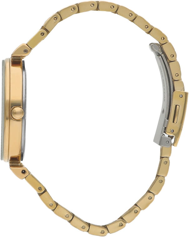 Женские часы Lee Cooper LC07711.270 — это стильное сочетание элегантности и современного дизайна. Круглый корпус диаметром 35 мм выполнен из суперметалла с IP-покрытиемIP-покрытиеМетод ионного напыления. Демонстрирует повышенную устойчивость к истиранию, окислению и химическим веществам. Под воздействием высокого давления и температуры около 1500°C молекулы металла надёжно соединяются с частицами корпуса часов. золотого цвета, придающий модели особый блеск. Изысканный циферблат защищен минеральным стекломМинеральное стеклоМинеральное стекло представляет собой искусственно выращенный минерал кварца. Такое стекло отличается особой устойчивостью к повреждениям и царапинам. Уступает по некоторым качествам сапфировому стеклу., обеспечивающим устойчивость к царапинам. Метки в виде штрихов. Часы оснащены надежным кварцевым механизмом, а стальной браслет с IP-покрытиемIP-покрытиеМетод ионного напыления. Демонстрирует повышенную устойчивость к истиранию, окислению и химическим веществам. Под воздействием высокого давления и температуры около 1500°C молекулы металла надёжно соединяются с частицами корпуса часов. на раскладной застёжкеРаскладная застёжкаТакой тип застёжки используется только на браслетах из металла. Она никогда не раскрывается полностью, происходит разделение на 2 и более частей. Раскладывающая застёжка снизит вероятность потери часов к минимуму. гарантирует комфортную посадку на запястье. Водозащита 30 метров защищает модель от случайных брызг и дождя. Lee Cooper — отличный выбор для тех, кто ценит утонченность и качество.