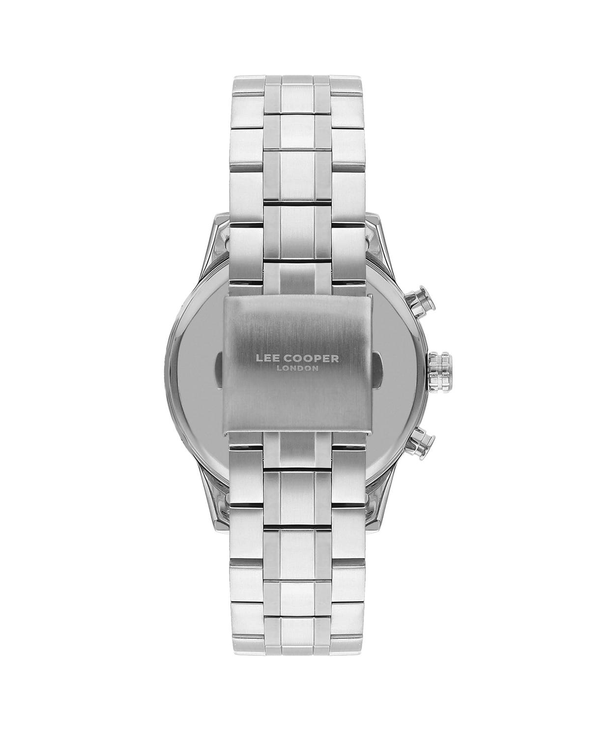 Мужские часы Lee Cooper LC07836.370— это стильное сочетание элегантности и современного дизайна. Изысканный корпус диаметром 45 мм выполнен из суперметалла, который придает модели особый изысканный вид. Циферблат защищен минеральным стекломМинеральное стеклоМинеральное стекло представляет собой искусственно выращенный минерал кварца. Такое стекло отличается особой устойчивостью к повреждениям и царапинам. Уступает по некоторым качествам сапфировому стеклу., обеспечивающим устойчивость к царапинам. Метки в виде штрихов. Часы оснащены надежным кварцевым механизмом, а стальной браслет на раскладной застёжкеРаскладная застёжкаТакой тип застёжки используется только на браслетах из металла. Она никогда не раскрывается полностью, происходит разделение на 2 и более частей. Раскладывающая застёжка снизит вероятность потери часов к минимуму. гарантирует комфортную посадку на запястье. Стрелки и метки с люминесцентным покрытиемЛюминесцентное покрытиеПозволяет считывать показания времени в темноте. Производители наносят на стрелки, часовые индексы, безель или поверхность циферблата светонакопительный состав, дающий холодное свечение. позволяют легко считывать время даже в условиях недостаточного освещения. Мультифункциональная модель с индикацией даты, дня недели, со вторым часовым поясомВторой часовой поясФункция, позволяющая отображать время двух часовых поясов одновременно.. Водозащита 50 метров позволит защитить корпус от случайных брызг или капель дождя. Lee Cooper — отличный выбор для тех, кто ценит утонченность и качество.