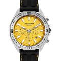 Мужские часы Lee Cooper LC07848.311 выполнены в классическом стиле и сочетают строгий дизайн с надёжным механизмом. Модель оснащена кварцевым механизмом, обеспечивающим точность хода и минимальное обслуживание. Корпус имеет размер 45 мм, изготовлен из суперметалла с безелемБезельВнешний ободок, закрепляющий стекло. В спортивных часах так называется поворотное кольцо с делениями на циферблате, выполняет роль таймера – замеряет отрезки времени на шкале. Неподвижный безель – элемент декора. Однонаправленно вращающийся безель на дайверских часах позволяет фиксировать моменты погружения и выныривания на поверхность.. Циферблат желтого цвета дополнен индексами для чёткого отсчёта времени, а также функциями отображения даты, дня недели, 24-часового индикатора и второго часового поясаВторой часовой поясФункция, позволяющая отображать время двух часовых поясов одновременно.. Защиту циферблата обеспечивает минеральное стеклоМинеральное стеклоМинеральное стекло представляет собой искусственно выращенный минерал кварца. Такое стекло отличается особой устойчивостью к повреждениям и царапинам. Уступает по некоторым качествам сапфировому стеклу., устойчивое к мелким механическим повреждениям. Циферблат украшен стрелками и метками с люминесцентным покрытиемЛюминесцентное покрытиеПозволяет считывать показания времени в темноте. Производители наносят на стрелки, часовые индексы, безель или поверхность циферблата светонакопительный состав, дающий холодное свечение., гармонично дополняющим общий дизайн модели. Ремень из каучука оснащен стандартной застежкой, обеспечивающим комфортное и безопасное ношение. Водозащита 5 АТМ позволяет использовать часы в повседневных условиях без риска повреждения от случайных брызг воды. Это сочетание классического дизайна, прочности материалов и качества исполнения для уверенных в себе мужчин.