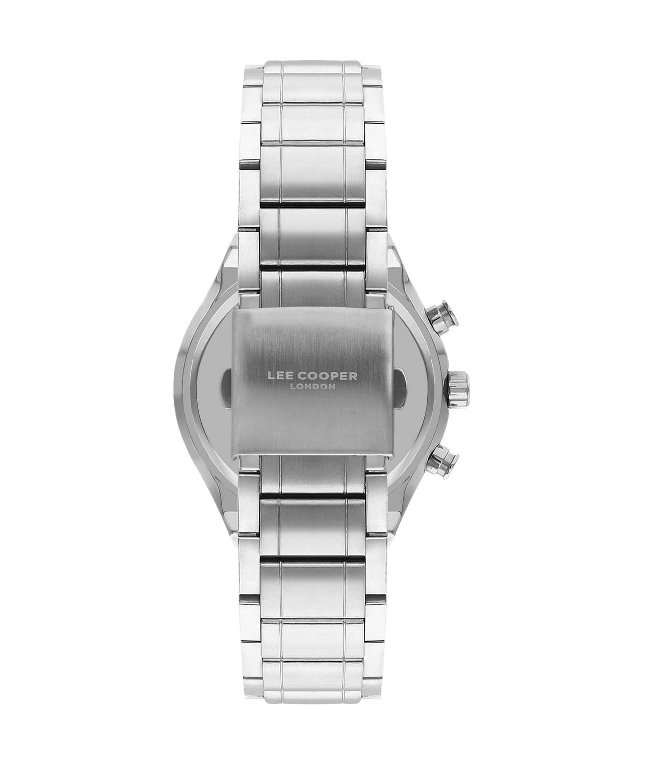 Мужские часы Lee Cooper LC07853.370 — это стильный аксессуар, сочетающий в себе классический дизайн и современные функции. Эти часы идеально подойдут для тех, кто ценит элегантность и практичность в повседневной жизни. Круглый корпус диаметром 43 мм выполнен из суперметалла серебристого цвета. Циферблат защищен минеральным стекломМинеральное стеклоМинеральное стекло представляет собой искусственно выращенный минерал кварца. Такое стекло отличается особой устойчивостью к повреждениям и царапинам. Уступает по некоторым качествам сапфировому стеклу., обеспечивающим устойчивость к царапинам. Часы оснащены надежным кварцевым механизмом, а элегантный стальной браслет на раскладной застёжкеРаскладная застёжкаТакой тип застёжки используется только на браслетах из металла. Она никогда не раскрывается полностью, происходит разделение на 2 и более частей. Раскладывающая застёжка снизит вероятность потери часов к минимуму. гарантирует комфортную посадку на запястье. Часы с люминесцентным покрытиемЛюминесцентное покрытиеПозволяет считывать показания времени в темноте. Производители наносят на стрелки, часовые индексы, безель или поверхность циферблата светонакопительный состав, дающий холодное свечение. позволяют легко считывать время даже в условиях недостаточного освещения. Окошко даты находится в положении 4 часов. Водозащита 50 метров позволит защитить корпус от случайных брызг или капель дождя. Мультифункциональная модель с 24-х часовым индикатором и хронографомХронографФункция позволяет измерять отрезки времени с особой точностью: часы, минуты, секунды. Верным признаком хронографа является наличие на циферблате 3 дополнительных окошек-счётчиков.. Lee Cooper — отличный выбор для тех, кто ценит утонченность и качество.