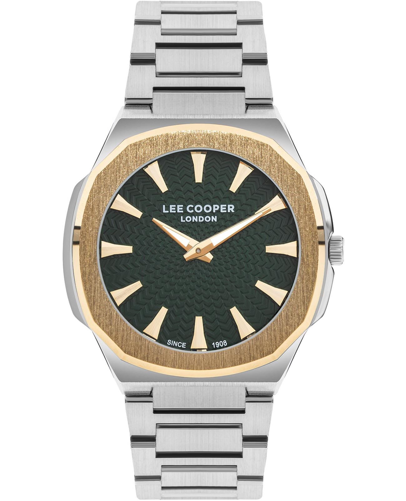 Мужские часы Lee Cooper LC07861.270 – это стильная модель, которая сочетает в себе современный дизайн и высокую функциональность. Часы идеально подходят для ежедневного ношения и могут стать отличным дополнением к любому наряду. Элегантный корпус часов диаметром 42 мм выполнен из суперметалла, а неподвижный безельБезельВнешний ободок, закрепляющий стекло. В спортивных часах так называется поворотное кольцо с делениями на циферблате, выполняет роль таймера – замеряет отрезки времени на шкале. Неподвижный безель – элемент декора. Однонаправленно вращающийся безель на дайверских часах позволяет фиксировать моменты погружения и выныривания на поверхность. с IP-покрытиемIP-покрытиеМетод ионного напыления. Демонстрирует повышенную устойчивость к истиранию, окислению и химическим веществам. Под воздействием высокого давления и температуры около 1500°C молекулы металла надёжно соединяются с частицами корпуса часов. придает модели особый блеск. Минеральное стеклоМинеральное стеклоМинеральное стекло представляет собой искусственно выращенный минерал кварца. Такое стекло отличается особой устойчивостью к повреждениям и царапинам. Уступает по некоторым качествам сапфировому стеклу. защищает изысканный циферблат от царапин, сохраняя его безупречный вид. Циферблат дополнен аккуратными стрелками с люминесцентным покрытиемЛюминесцентное покрытиеПозволяет считывать показания времени в темноте. Производители наносят на стрелки, часовые индексы, безель или поверхность циферблата светонакопительный состав, дающий холодное свечение., что гарантирует читаемость даже в условиях недостаточного освещения.  Механизм часов гарантирует точный ход и надежную работу, а надежный браслет из нержавеющей стали с раскладной застёжкойРаскладная застёжкаТакой тип застёжки используется только на браслетах из металла. Она никогда не раскрывается полностью, происходит разделение на 2 и более частей. Раскладывающая застёжка снизит вероятность потери часов к минимуму. обеспечивает комфортную фиксацию на запястье. Водонепроницаемость 50 м позволяет использовать часы в повседневных условиях. Модель LC07861.270 станет прекрасным выбором для тех, кто ценит стиль и качество в аксессуарах.