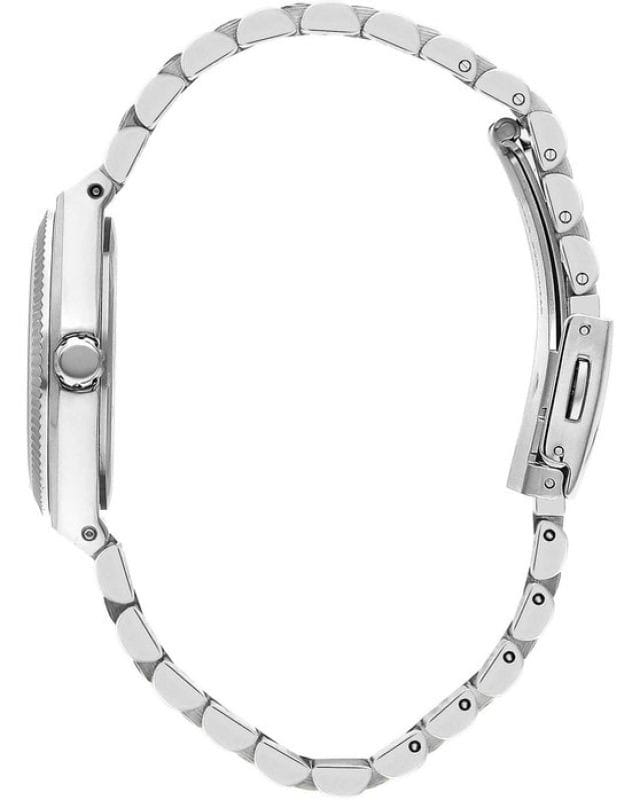 Женские часы Lee Cooper LC07970.380 с изящным корпусом 33 мм, выполненным из суперметалла, сочетают элегантность и надежность. Голубой циферблат придаёт модели утончённый стиль, а минеральное стеклоМинеральное стеклоМинеральное стекло представляет собой искусственно выращенный минерал кварца. Такое стекло отличается особой устойчивостью к повреждениям и царапинам. Уступает по некоторым качествам сапфировому стеклу. защищает его от царапин и повреждений. Точный кварцевый механизм гарантирует стабильную работу и точность хода. Водозащита 30 м защищает от случайных брызг. Стальной браслет с раскладной застёжкойРаскладная застёжкаТакой тип застёжки используется только на браслетах из металла. Она никогда не раскрывается полностью, происходит разделение на 2 и более частей. Раскладывающая застёжка снизит вероятность потери часов к минимуму. обеспечивает комфортное ношение и надёжную фиксацию на запястье. Стрелки и метки покрыты люминесцентным покрытиемЛюминесцентное покрытиеПозволяет считывать показания времени в темноте. Производители наносят на стрелки, часовые индексы, безель или поверхность циферблата светонакопительный состав, дающий холодное свечение., обеспечивающим отличную читаемость в темноте.