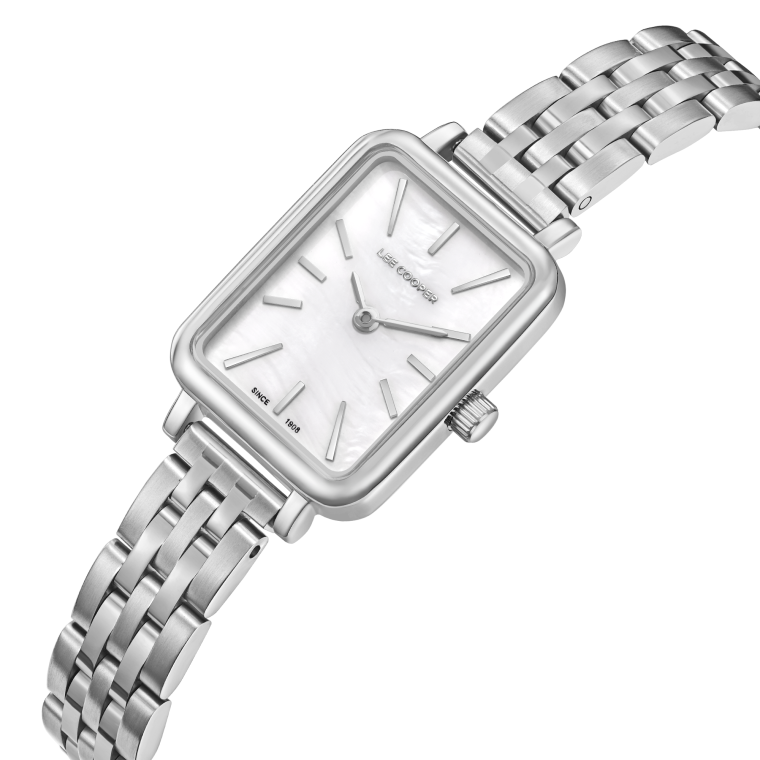 Женские наручные часы Lee Cooper LC08121.330 — это изысканная модель, сочетающая элегантный дизайн и практичность. Корпус выполнен из суперметалла, придавая часам уникальный и утончённый вид. Перламутровый циферблат с метками в виде штрихов добавляет свежий и стильный акцент, делая часы привлекательными для различных случаев. Модель оснащена надёжным кварцевым механизмом, обеспечивающим точность и долговечность. Минеральное стеклоМинеральное стеклоМинеральное стекло представляет собой искусственно выращенный минерал кварца. Такое стекло отличается особой устойчивостью к повреждениям и царапинам. Уступает по некоторым качествам сапфировому стеклу. защищает циферблат от повреждений и царапин, сохраняя его презентабельный вид. Водонепроницаемость 50 метров защищает часы от случайных брызг, что делает их подходящими для повседневных ситуаций, таких как мытьё рук или прогулки под лёгким дождём. Раскладная застёжкаРаскладная застёжкаТакой тип застёжки используется только на браслетах из металла. Она никогда не раскрывается полностью, происходит разделение на 2 и более частей. Раскладывающая застёжка снизит вероятность потери часов к минимуму. обеспечивает удобную посадку и надёжность при ношении. В целом, эти часы являются отличным выбором для тех, кто ищет аксессуар, объединяющий классический стиль, уникальное цветовое решение и функциональность. Их гармоничное сочетание серебристых и золотистых оттенков с элегантным перламутровым циферблатом и качественным механизмом делает их идеальным дополнением к любому гардеробу — от официального до повседневного.