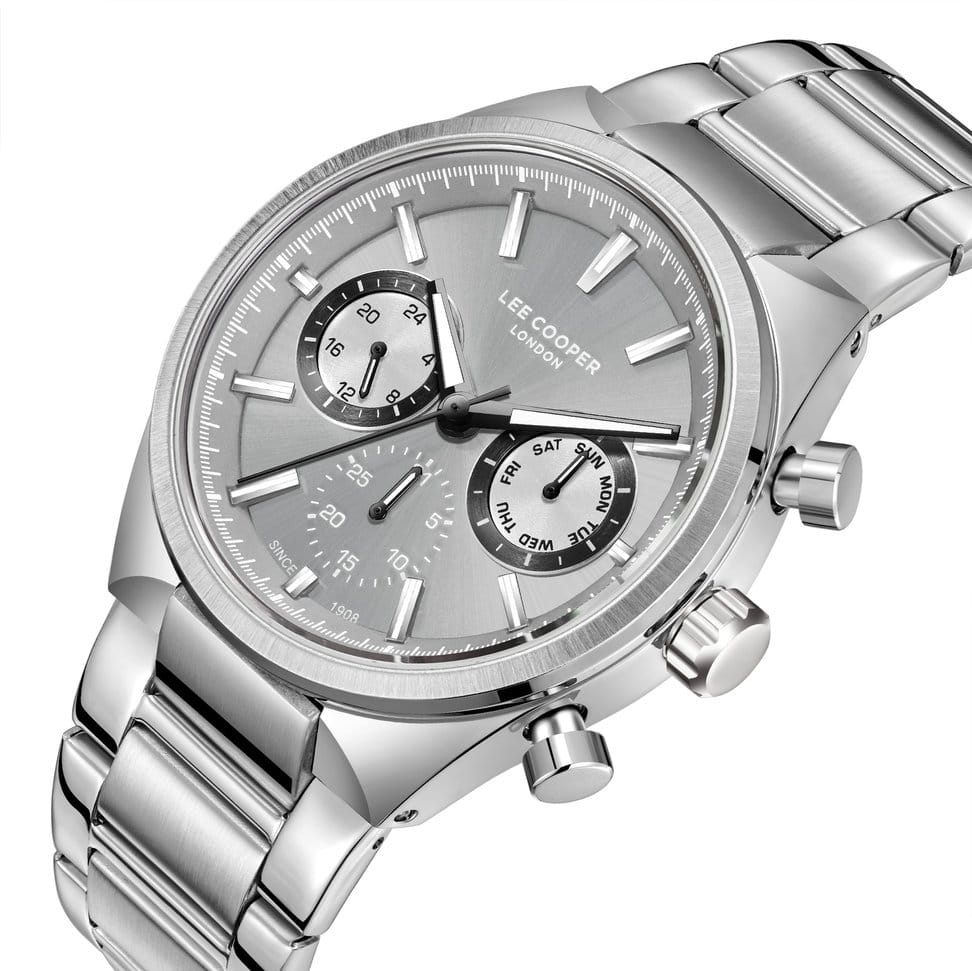 Мужские наручные часы Lee Cooper LC08174.360 оснащены кварцевым механизмом, обеспечивающий высокую точность хода и надежность. Элегантный корпус часов выполнен из суперметалла серебристого цвета, что делает их устойчивыми к внешним воздействиям и придает благородный вид. Циферблат украшен классическими стрелками и метками с люминесцентным покрытиемЛюминесцентное покрытиеПозволяет считывать показания времени в темноте. Производители наносят на стрелки, часовые индексы, безель или поверхность циферблата светонакопительный состав, дающий холодное свечение., гармонично дополняющим общий дизайн модели. Для защиты циферблата используется минеральное стеклоМинеральное стеклоМинеральное стекло представляет собой искусственно выращенный минерал кварца. Такое стекло отличается особой устойчивостью к повреждениям и царапинам. Уступает по некоторым качествам сапфировому стеклу., устойчивое к царапинам и механическим повреждениям. Корпус имеет круглую форму диаметром 42 мм, что делает часы заметными и подходящими. Браслет из стали оснащен раскладной застёжкойРаскладная застёжкаТакой тип застёжки используется только на браслетах из металла. Она никогда не раскрывается полностью, происходит разделение на 2 и более частей. Раскладывающая застёжка снизит вероятность потери часов к минимуму., обеспечивающим комфортное и безопасное ношение. Вынесенный циферблат с 24-х часовым указателем времени, индикацией даты и дня недели. Часы обладают водонепроницаемостью до 50 метров (5 АТМ), что позволяет использовать их в повседневной жизни, включая контакт с водой при мытье рук или дожде. Эти часы станут идеальным выбором для мужчин, ценящих стиль, качество и функциональность.