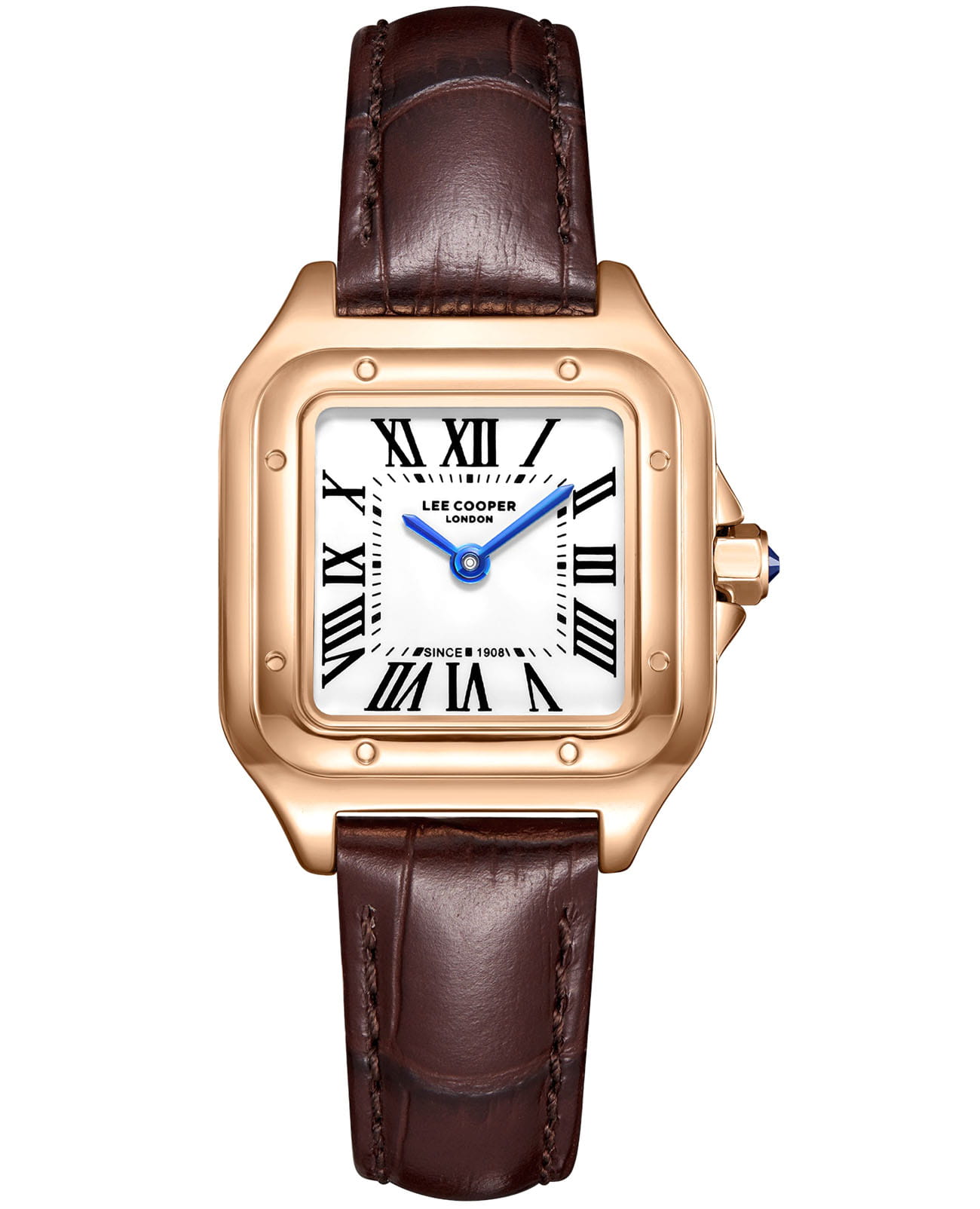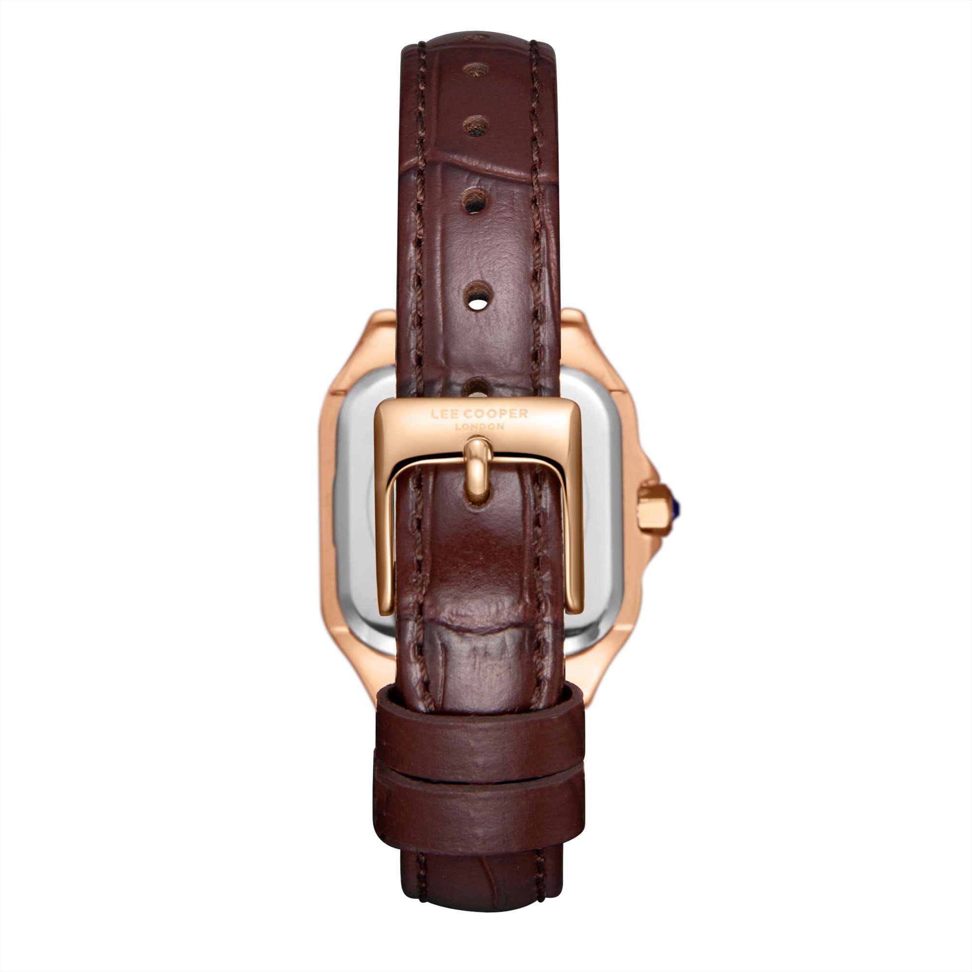 Женские наручные часы Lee Cooper LC08191.431 — воплощение элегантности и стиля, идеально подходящее для современной женщины. Эти часы сочетают в себе классический дизайн и современные тенденции, делая их универсальным аксессуаром для любого случая. Корпус размером 27 мм x 35 мм выполнен из суперметалла с IP-покрытиемIP-покрытиеМетод ионного напыления. Демонстрирует повышенную устойчивость к истиранию, окислению и химическим веществам. Под воздействием высокого давления и температуры около 1500°C молекулы металла надёжно соединяются с частицами корпуса часов. цвета розового золота, что придаёт часам изысканный внешний вид. Циферблат с изящными метками в виде римских цифр и стрелками, обеспечивая удобное считывание времени. Циферблат защищён минеральным стекломМинеральное стеклоМинеральное стекло представляет собой искусственно выращенный минерал кварца. Такое стекло отличается особой устойчивостью к повреждениям и царапинам. Уступает по некоторым качествам сапфировому стеклу., устойчивым к царапинам. Часы работают на кварцевом механизме, обеспечивая точность хода. Кожаный ремешок на стандартной застёжке гарантирует комфортное ношение и надёжную фиксацию на запястье. Водозащита 30 метров защищает часы от случайных брызг и дождя, делая их подходящими для повседневного использования.