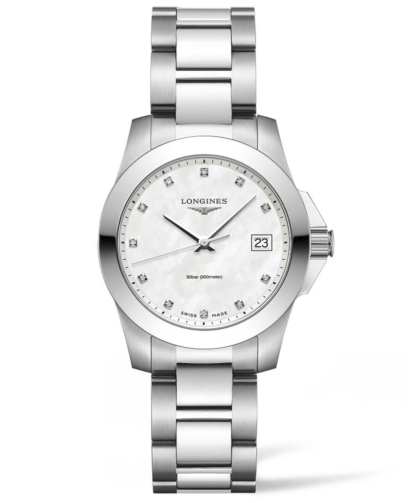 Женские кварцевые швейцарские Longines Conquest L3.377.4.87.6 помогут дополнить деловой образ. Сапфировое стеклоСапфировое стеклоПрочный и надёжный материал из кристалла сапфира синтетического происхождения, характеризующийся особой твёрдостью и устойчивостью к царапинам и повреждениям. с антибликовым покрытием, устойчивое к мелким механическим повреждениям. Окошко даты находится в положении 3 часа. Класс водозащиты: 300 метров, позволит плавать, нырять и заниматься другими водными видами спорта. Стальной браслет на раскладной застёжкеРаскладная застёжкаТакой тип застёжки используется только на браслетах из металла. Она никогда не раскрывается полностью, происходит разделение на 2 и более частей. Раскладывающая застёжка снизит вероятность потери часов к минимуму..